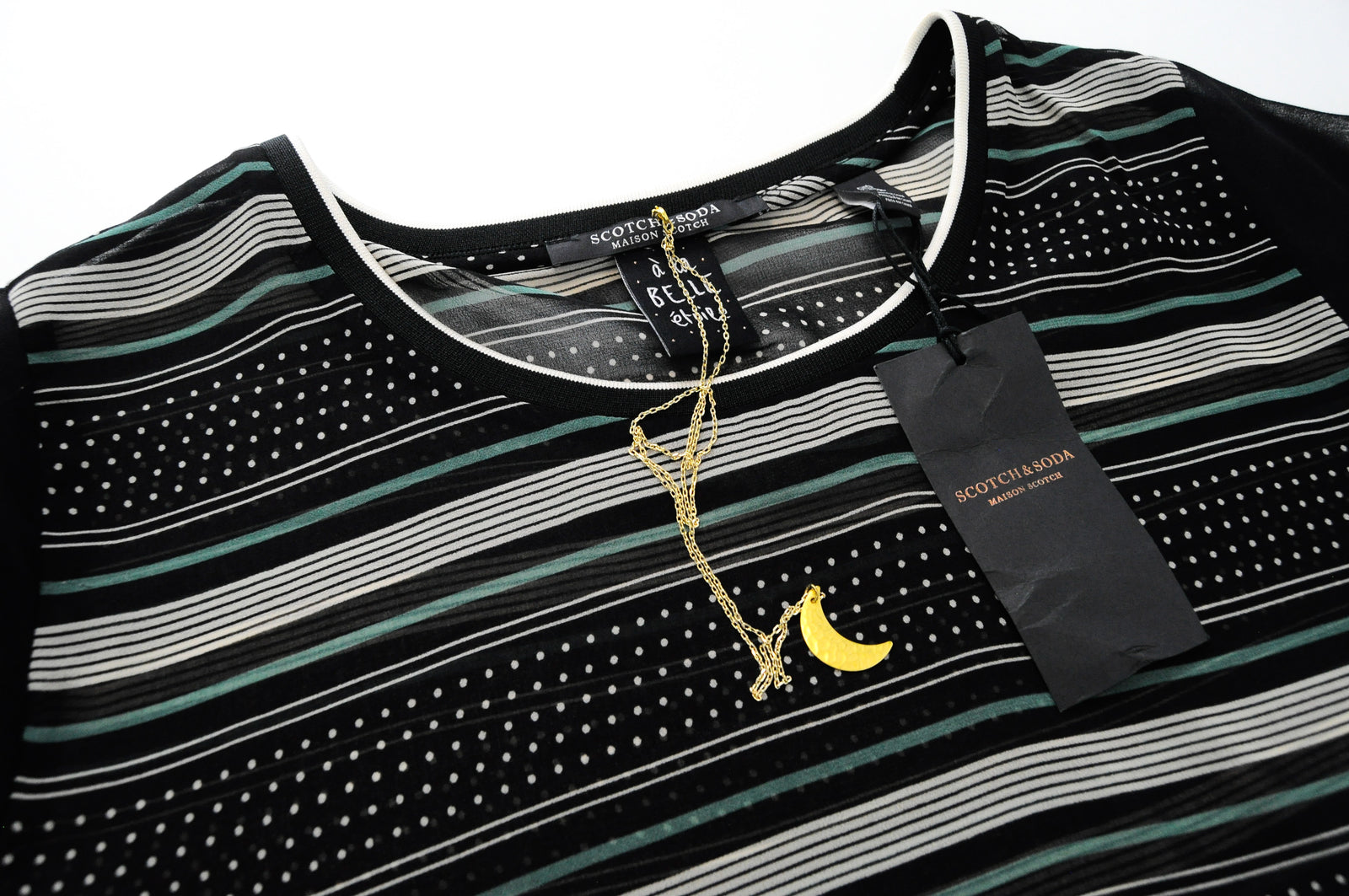 MAISON SCOTCH Women M Black Short Sleeve Patterned Lightweight Pullover