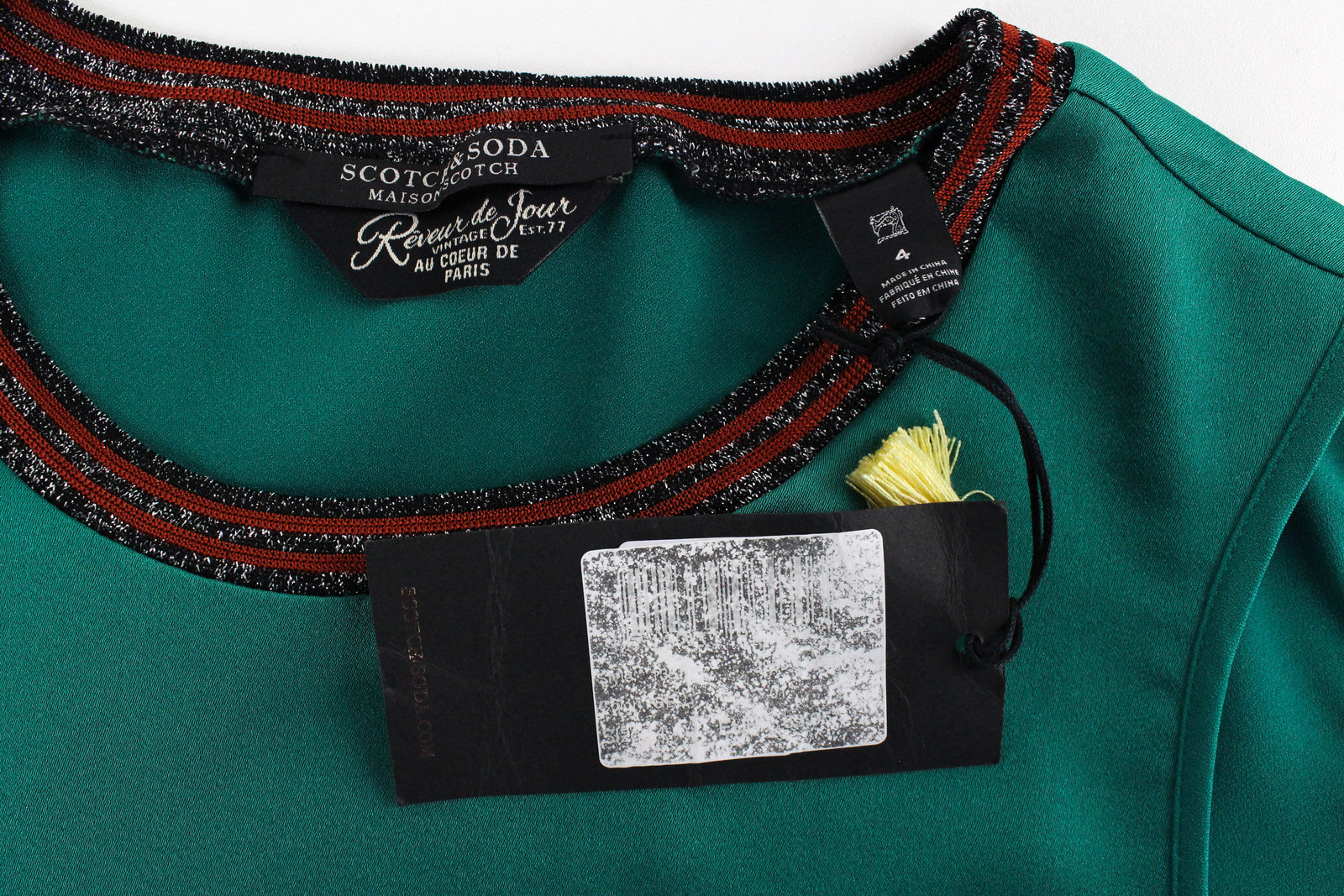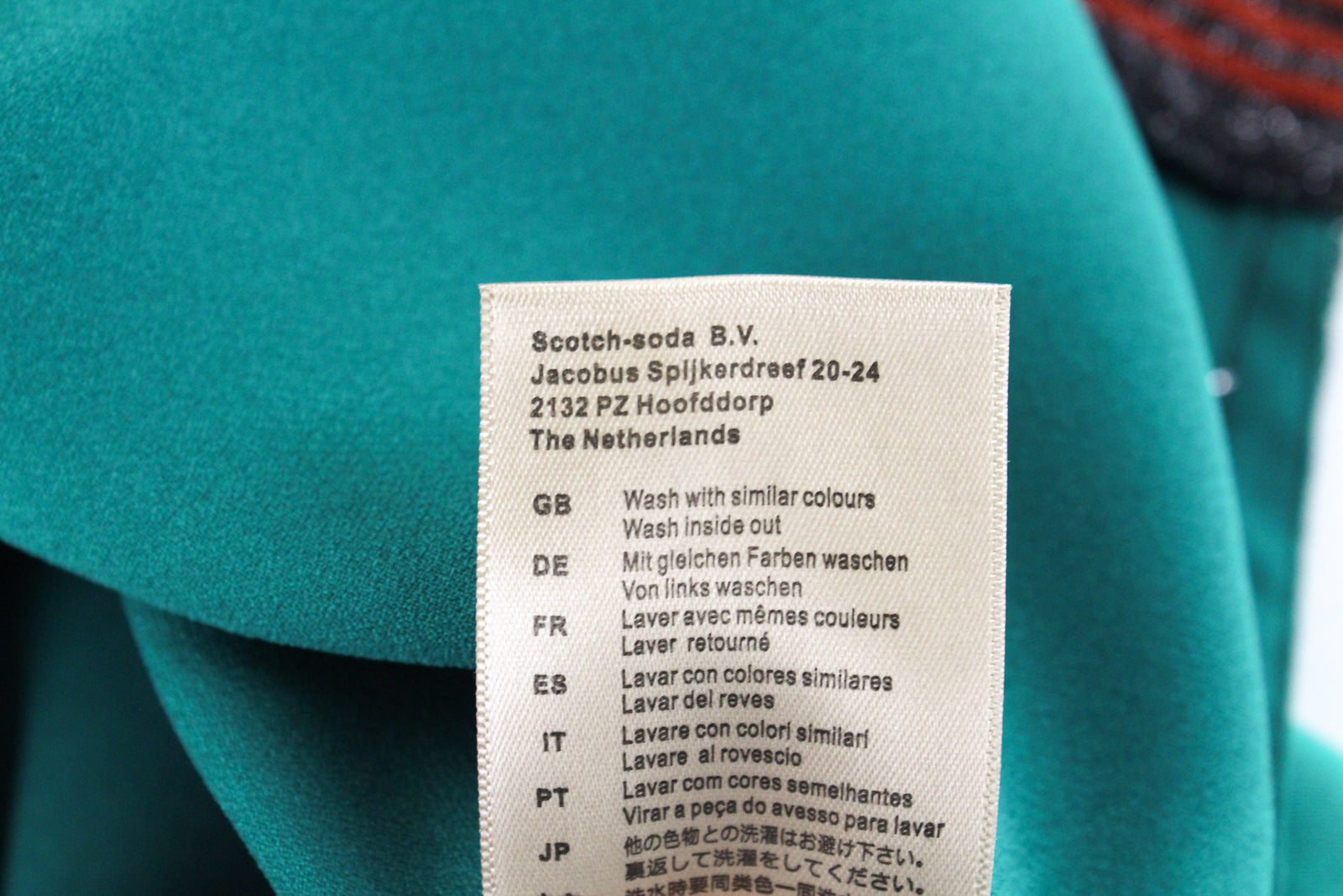 MAISON SCOTCH Women Top XL Blouse Parakeet Green Glitter Crew Neck Lurex Trimmed