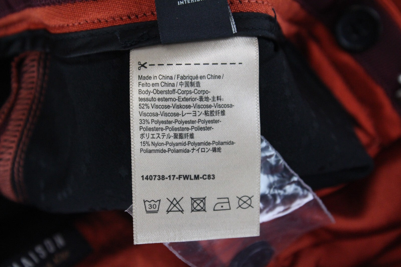 Material : 52%Viscose,33%Polyester,15%Nylon