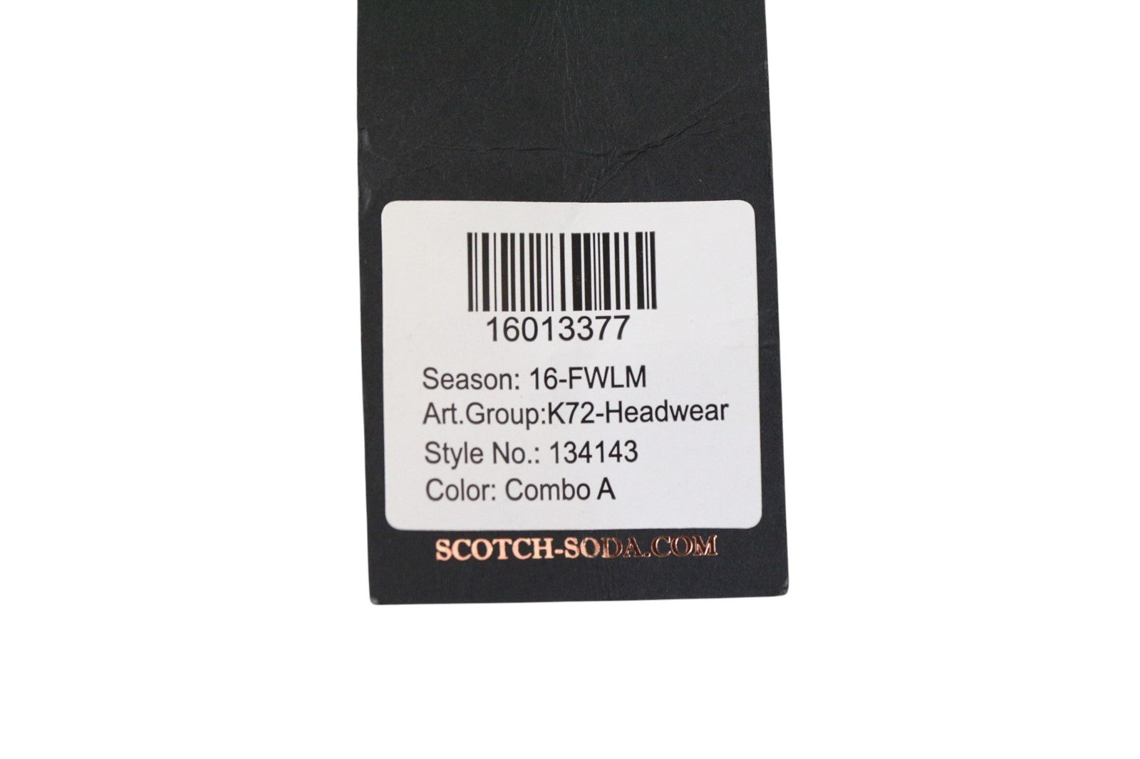 MAISON SCOTCH Women's Beanie OS Beige Knitted Pom Pom Colorful Pattern Hat