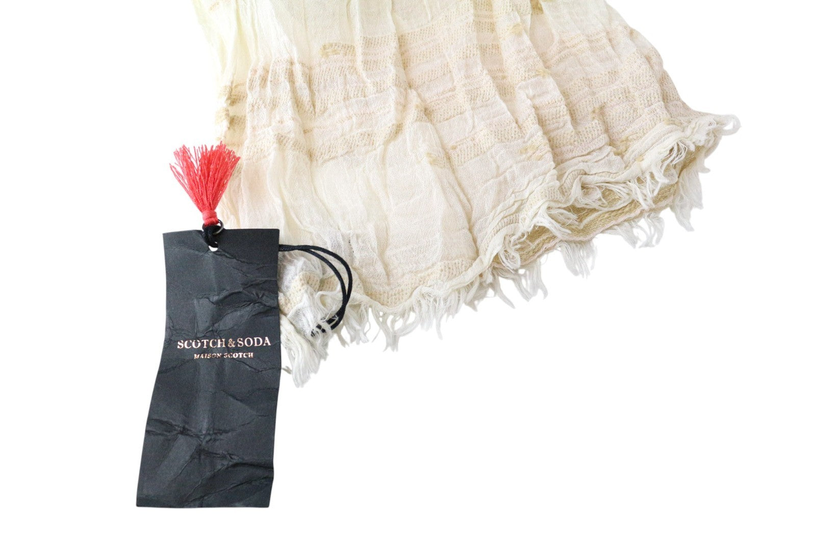 MAISON SCOTCH Women's Beige Cotton Blend Lightweight Patterned Scarf OS