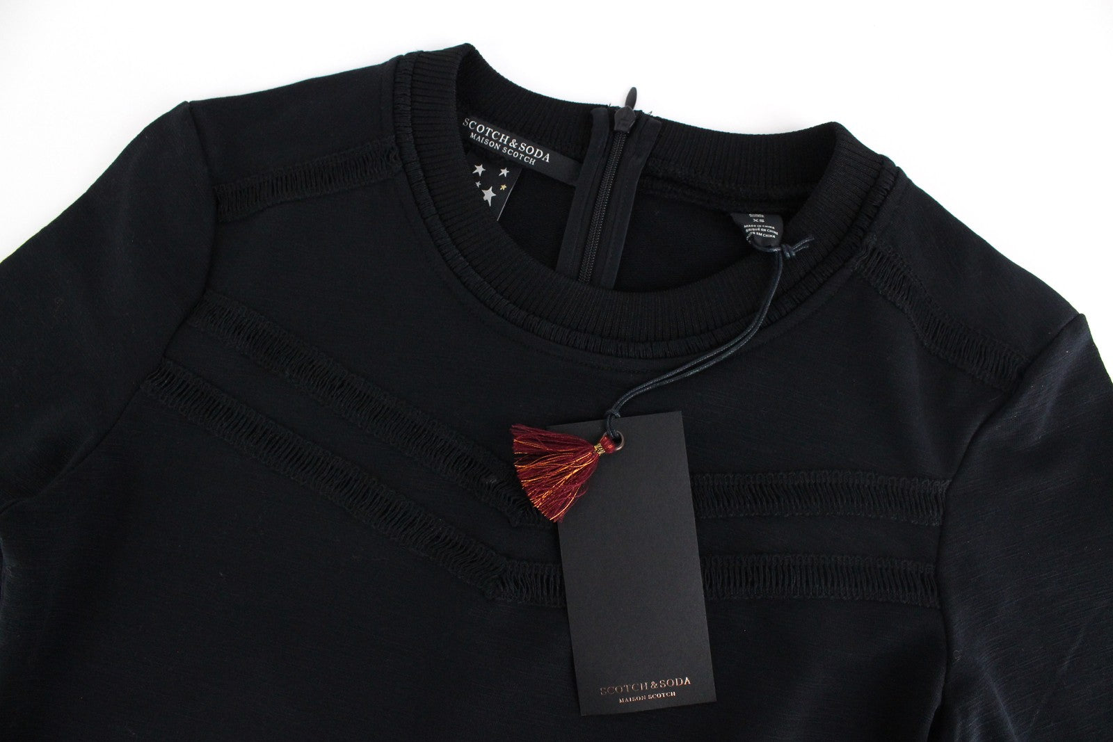 MAISON SCOTCH Womens Dress XS Black Cotton Blend Stretchy Short Long Sleeved