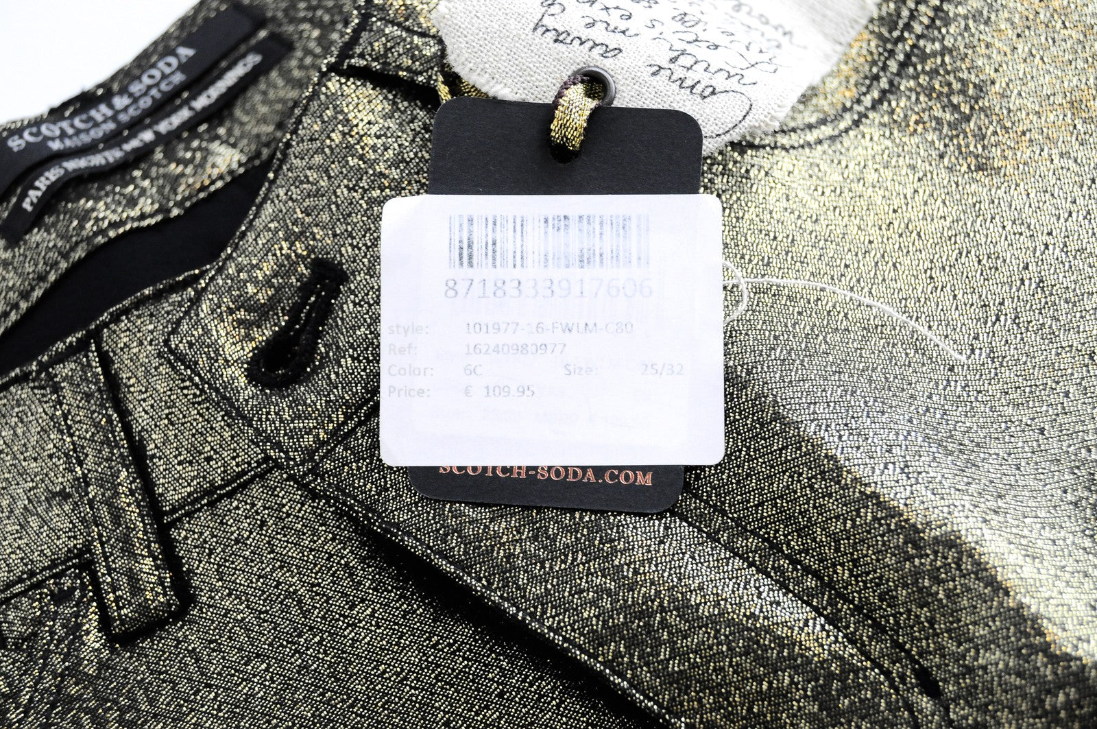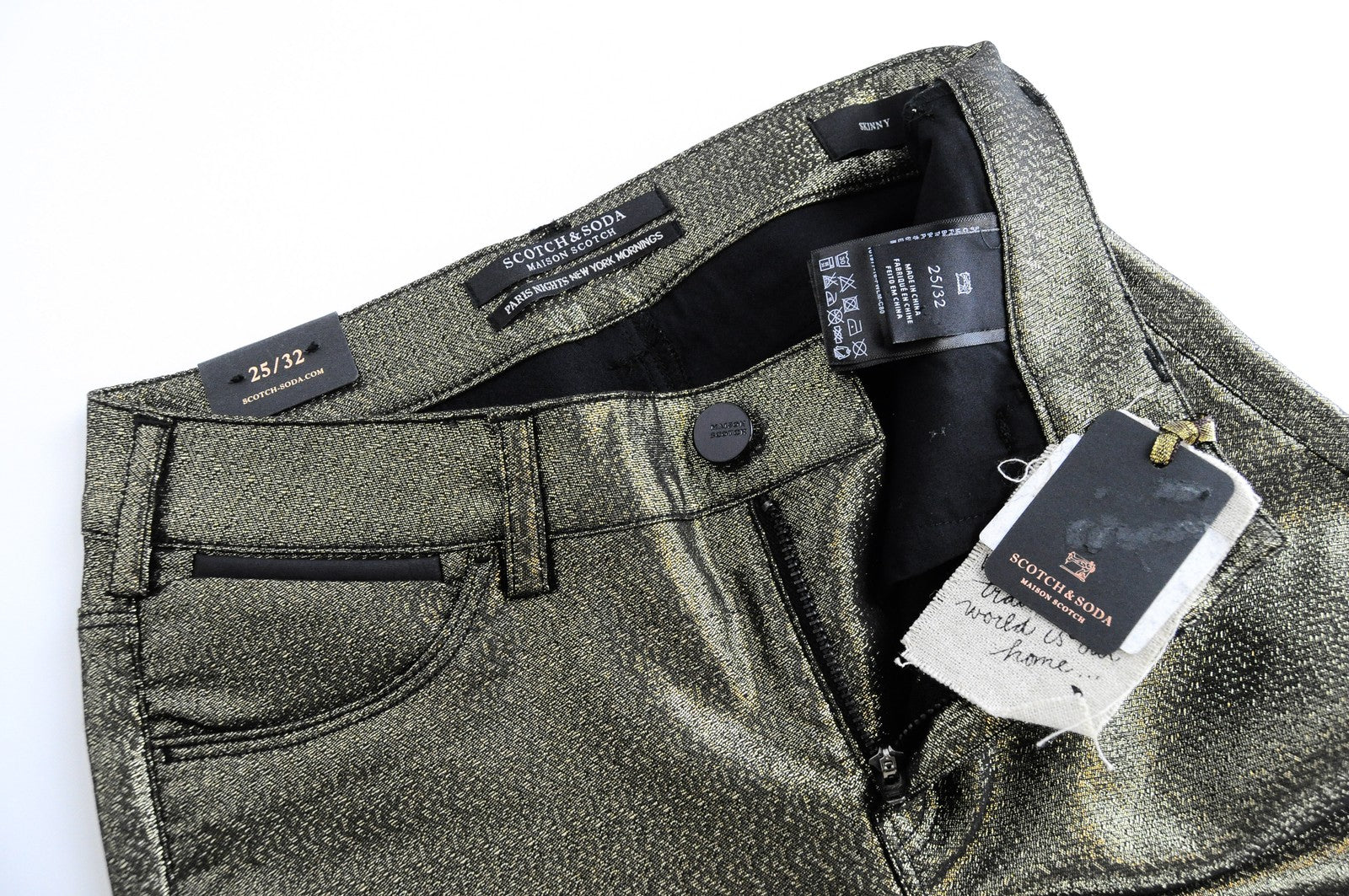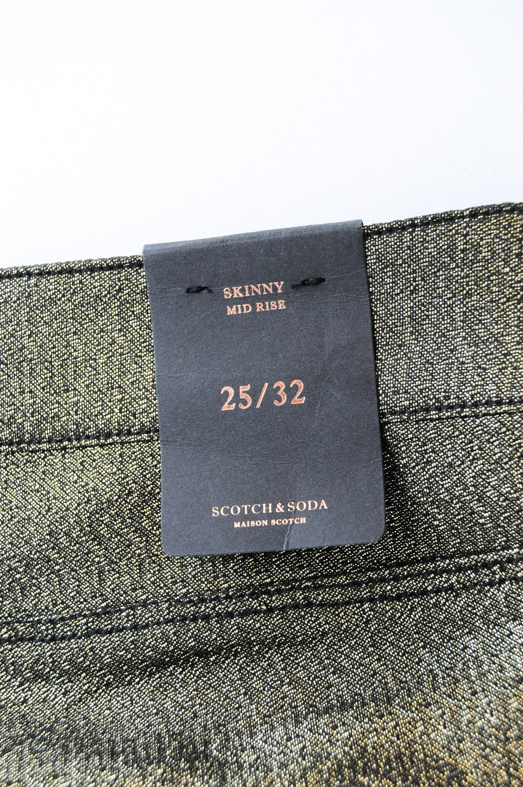 MAISON SCOTCH Womens Gold W25/L32 Skinny Mid Rise Pants Stretchy Shiny Thread