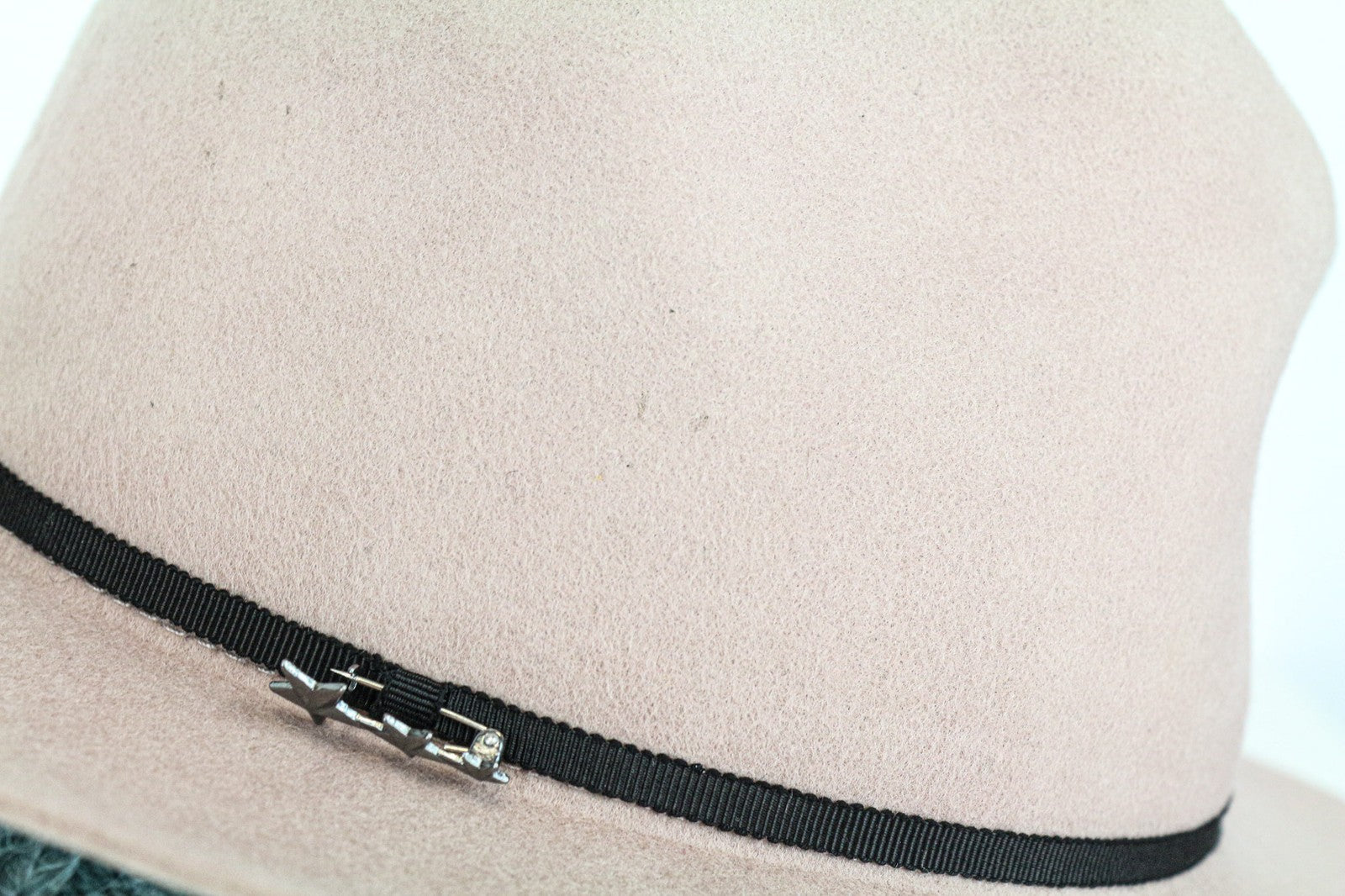MAISON SCOTCH Women's Hat OS Pink Wool Fedora Casual Style with Star Pin