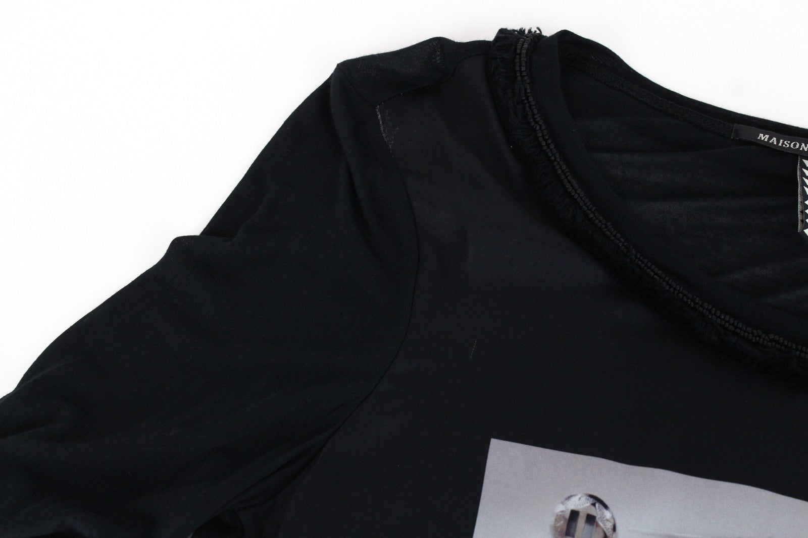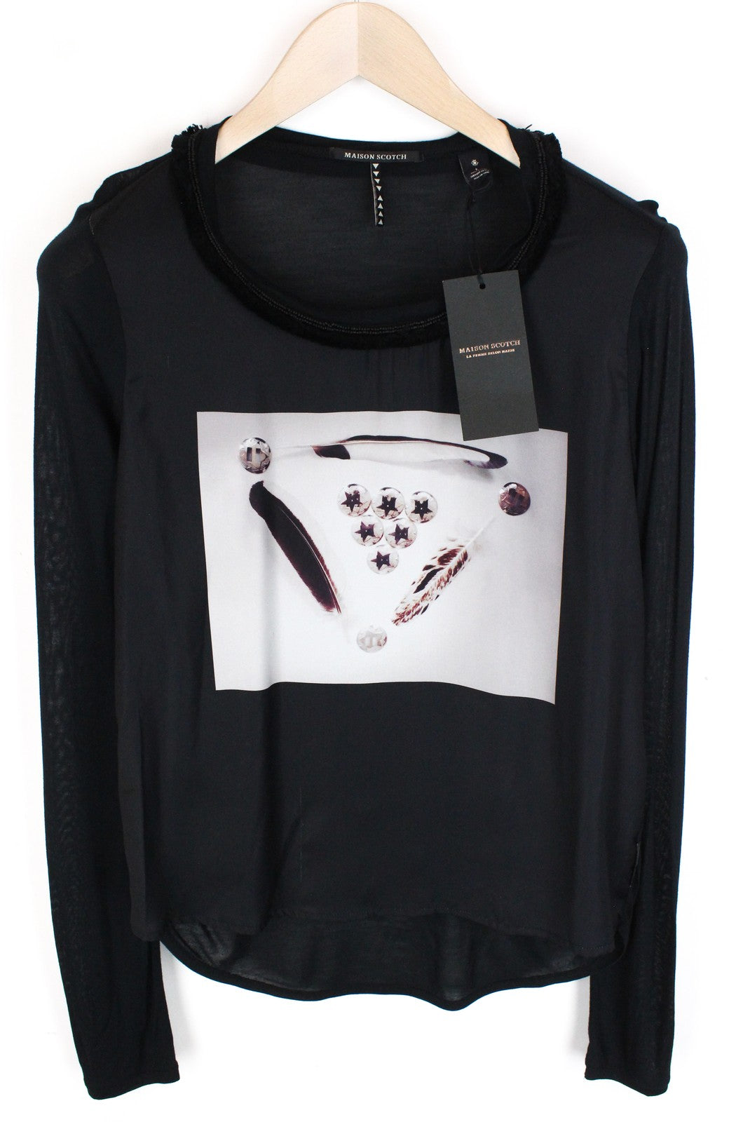 MAISON SCOTCH Women's S Black Abstract Print Light Casual Top Round Neckline