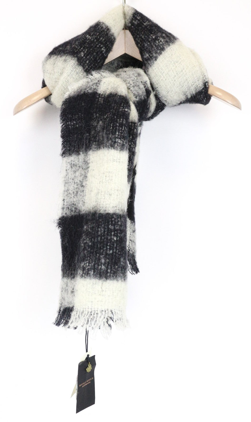 MAISON SCOTCH Women's Scarf OS Blue Wool Blend Checked Autumn Winter Wrap