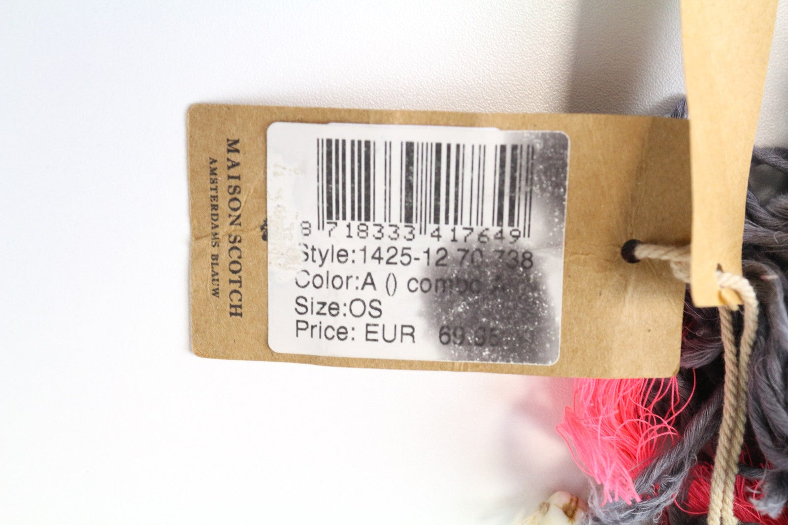 MAISON SCOTCH Women's Scarf OS Grey Cotton Knit Slim Tassel Pattern Lightweight
