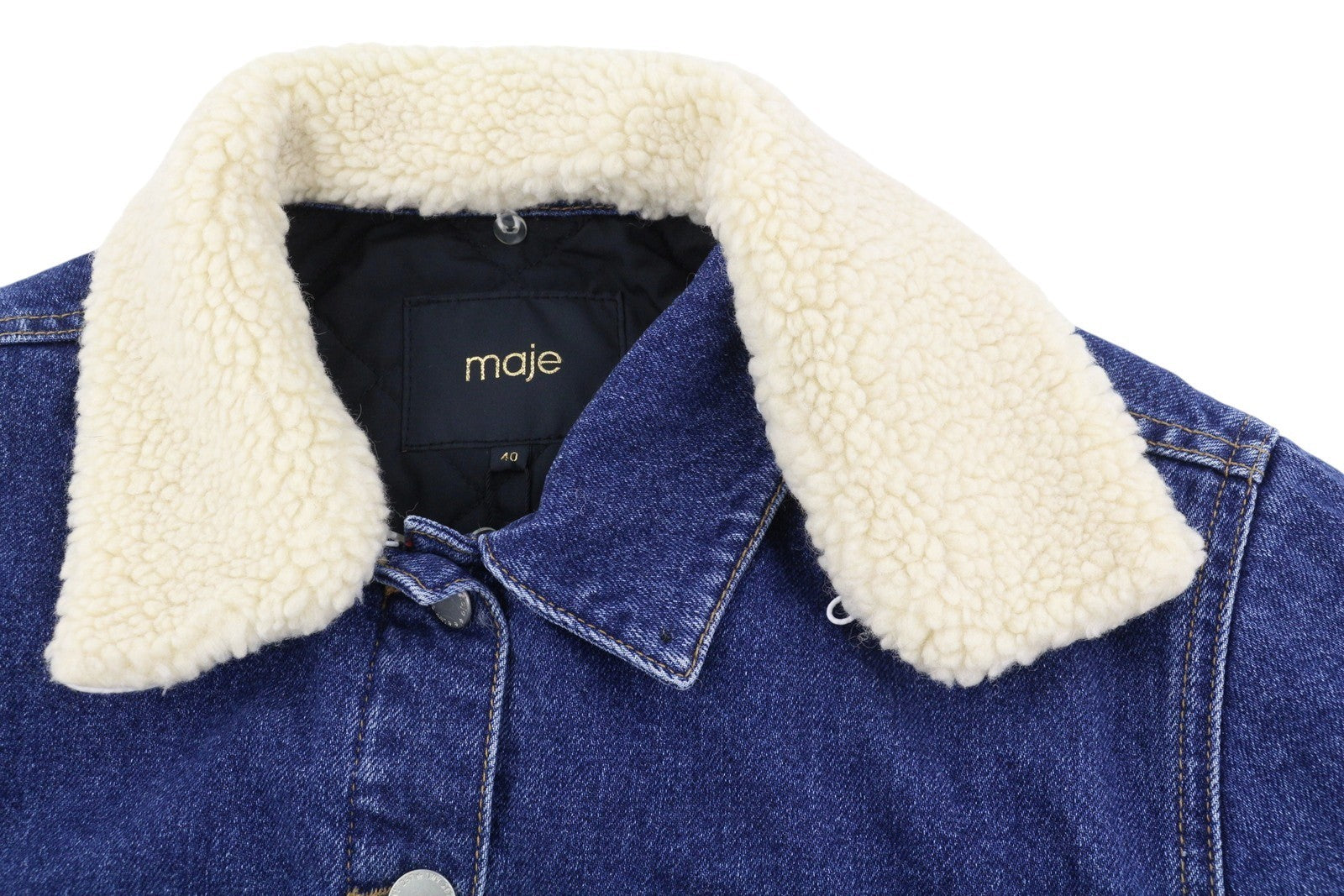 MAJE Bergamo Women Jacket 40 L Blue Button-Up Check Faux Underlay Trucker RRP295