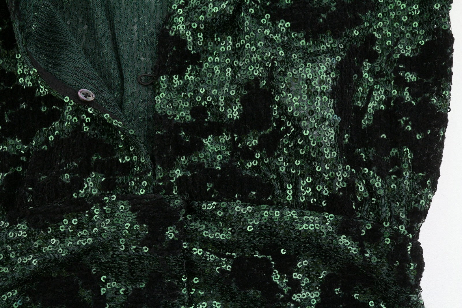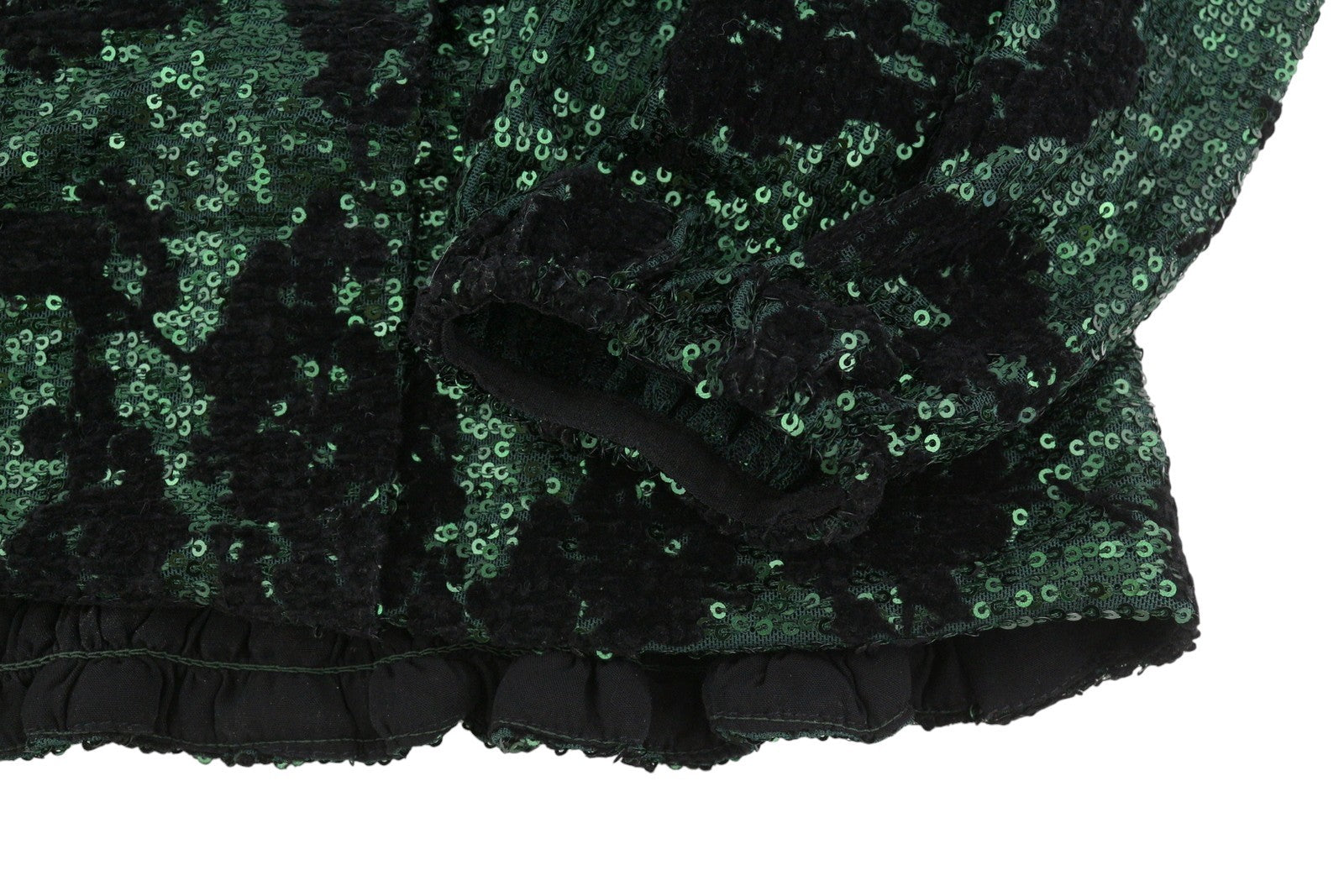 MAJE Liletie Women Blouse 1 S Green Fitted Shiny Sequined Balloon Sleeves RRP189