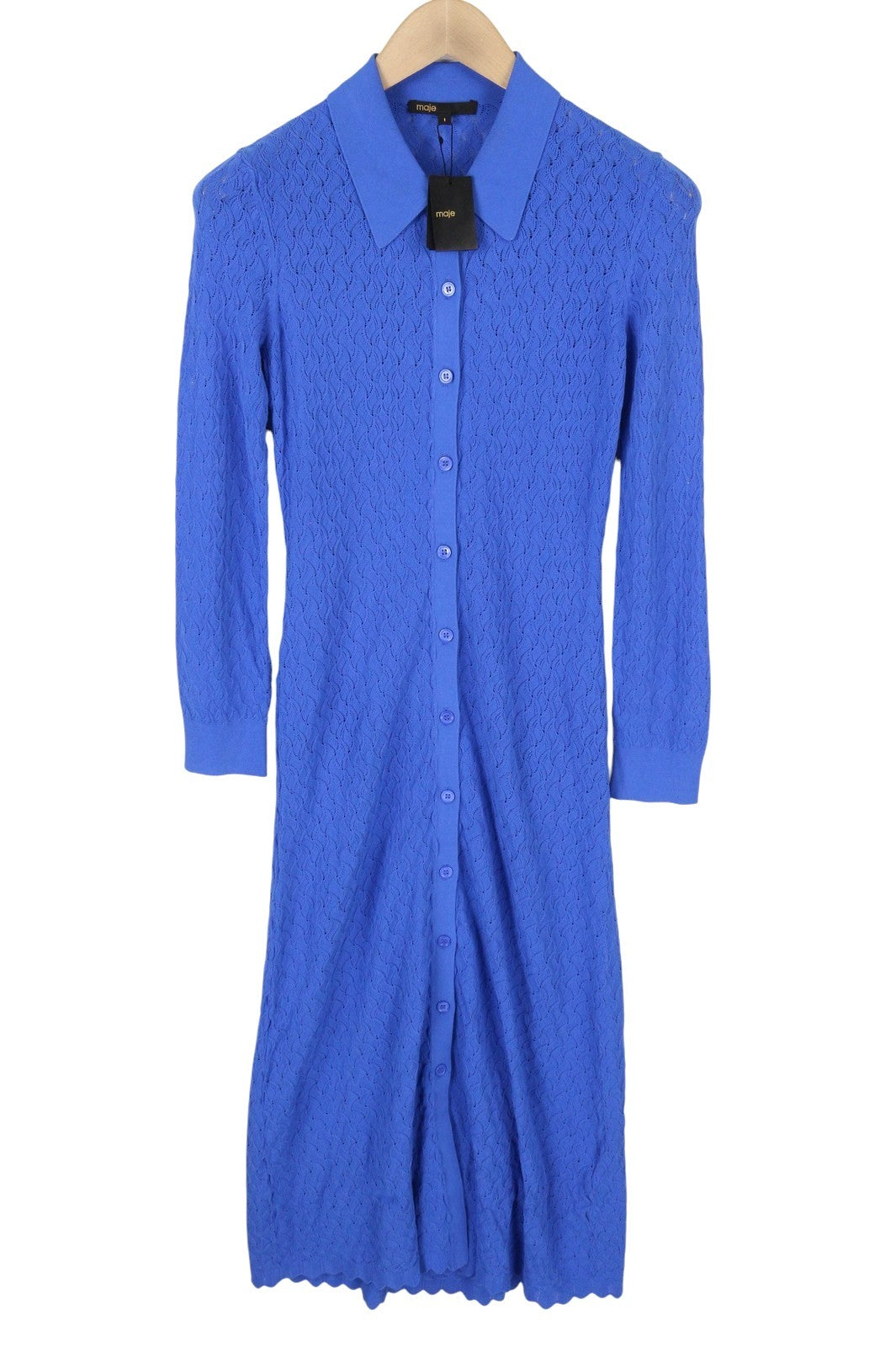 MAJE Maline Women Dress 1 S Blue Knit Button-Up Long Sleeve Mid-Length