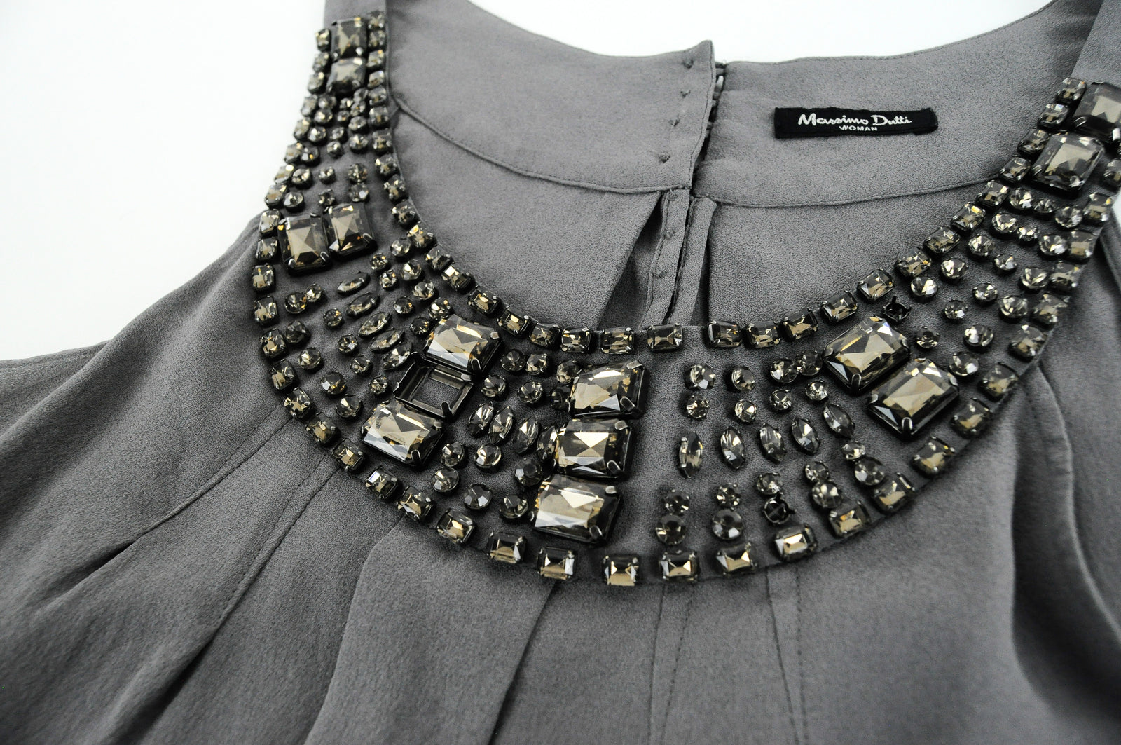 MASSIMO DUTTI Women Top S Sleeveless Round Neck Lightweight Pure Silk Gem Detail