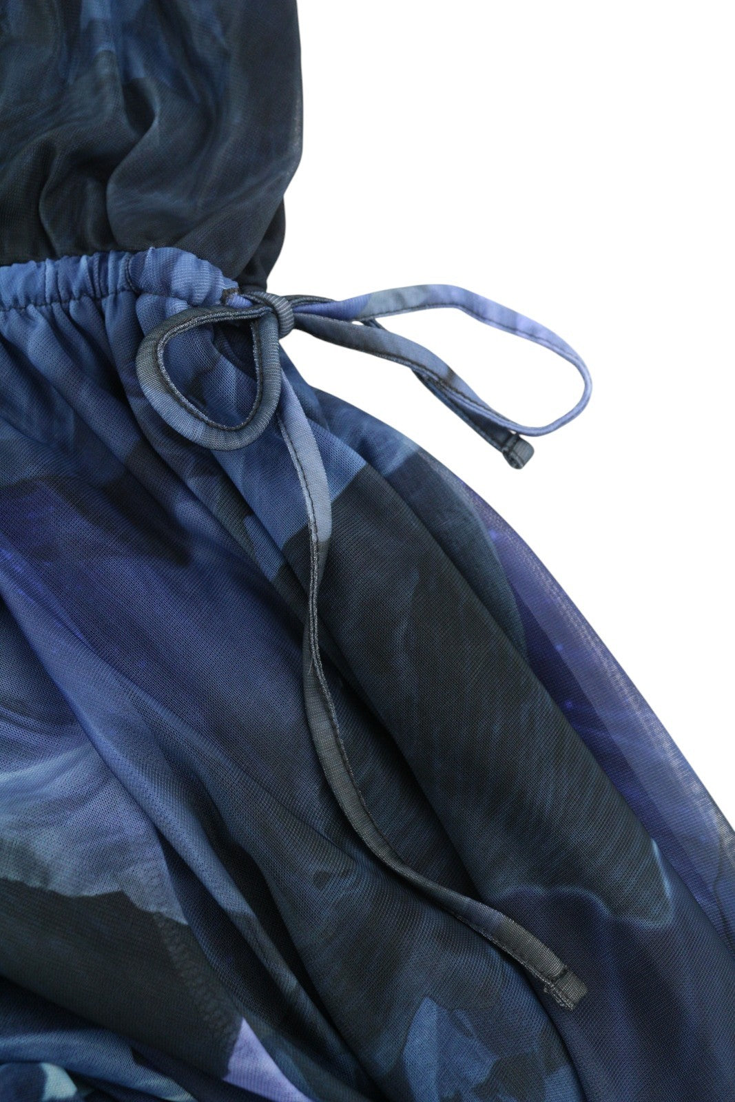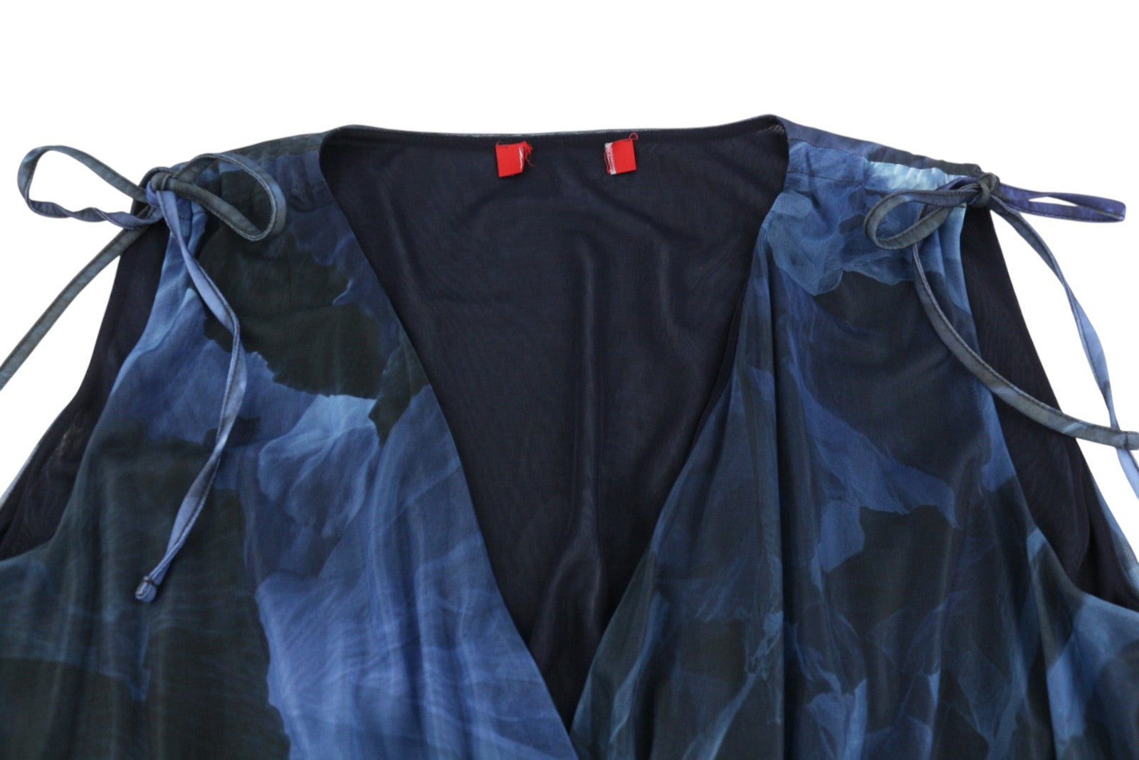 MAX&CO. Women Dress M Dark Blur Floral Print V-Neck Sleeveless Midi