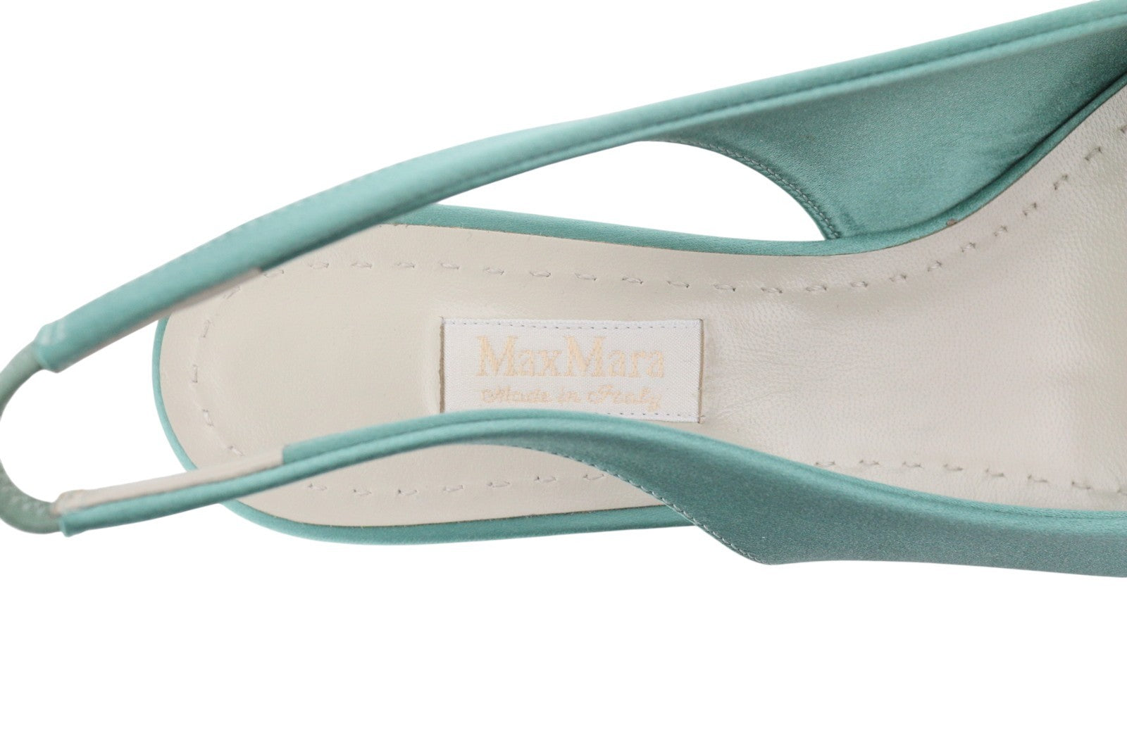 MAX MARA Women Heels EU40 Mint Blue Satin Slingbacks Pointed Toe RRP429