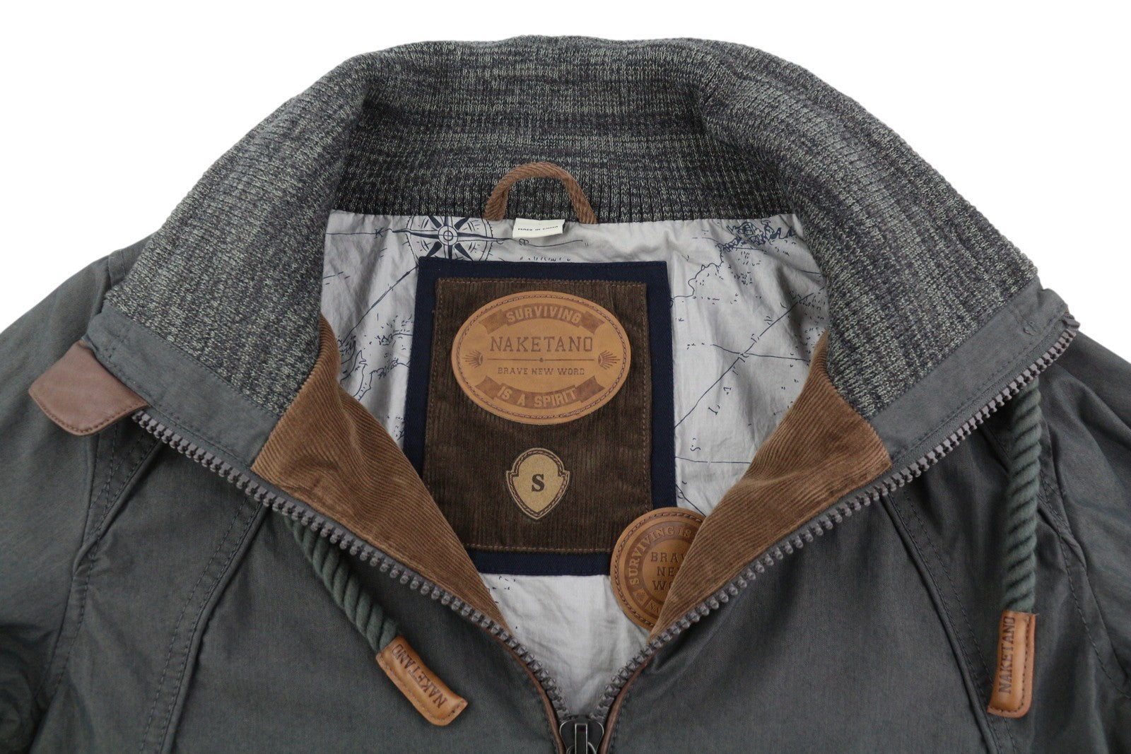 NAKETANO Women Jacket S Grey Lightweight High Neck Lined Long Sleeve