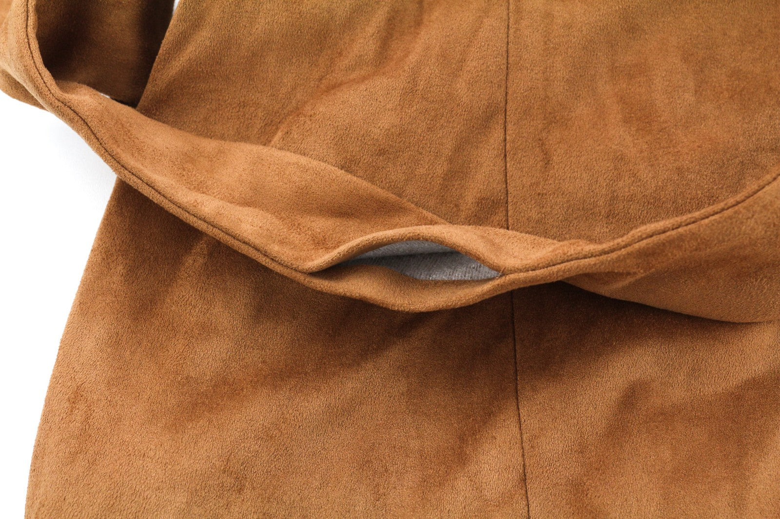 NIFE Womens Coat M Brown Faux Suede Stretch Belted Long Double-Breasted
