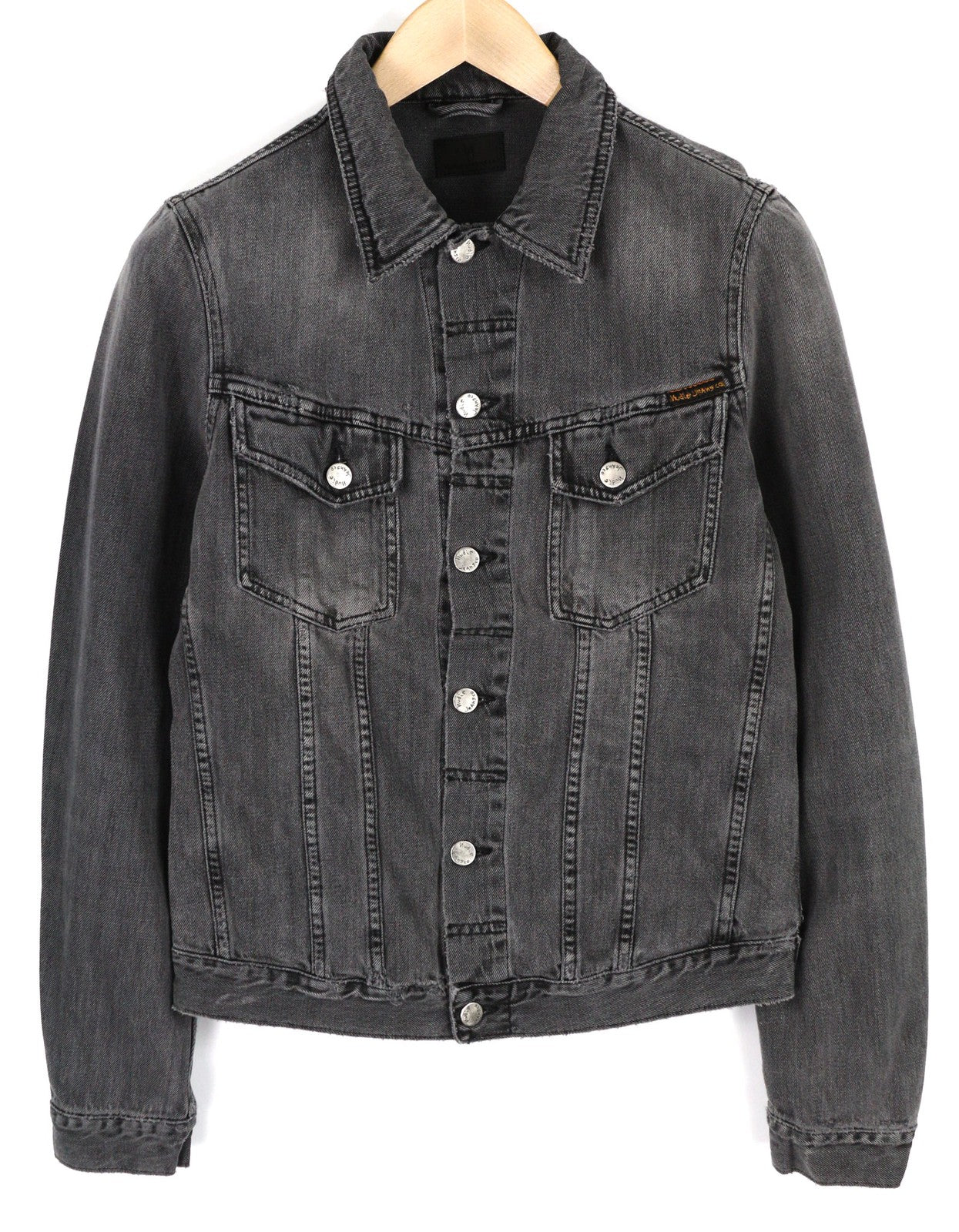 NUDIE Billy Men Jacket S Desolation Grey Neck Button Up Pockets Denim Mid