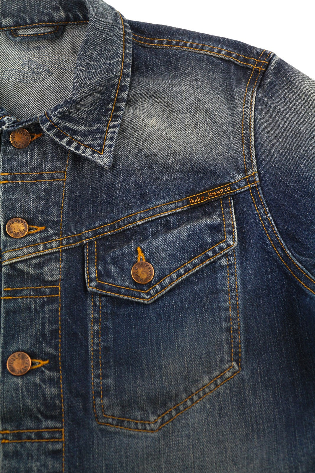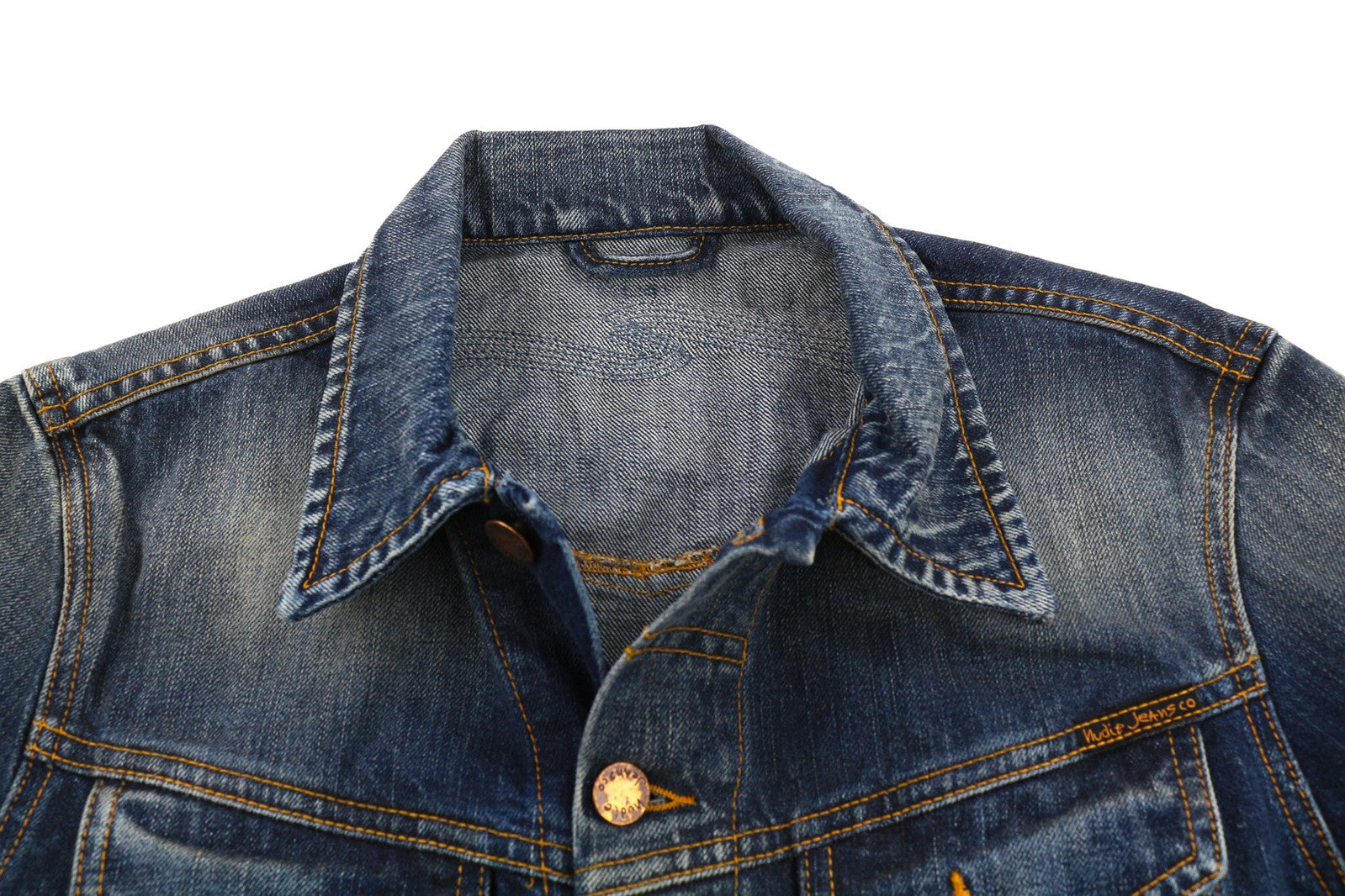 NUDIE Conny Men Jacket S Organic Night Rain Buttoned Neck Washed Denim