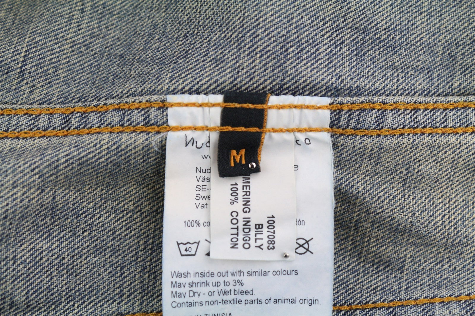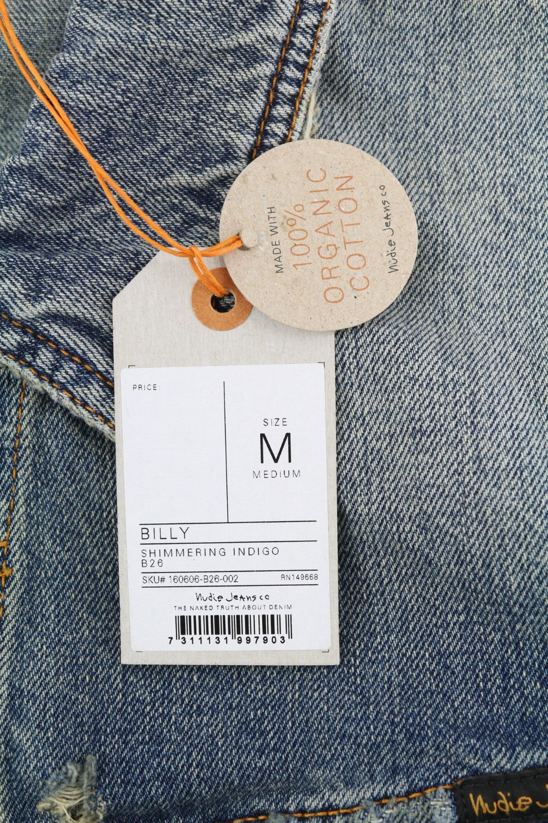 NUDIE JEANS Billy Men's M Shimmering Indigo Ripped Washed Polo Denim Jacket