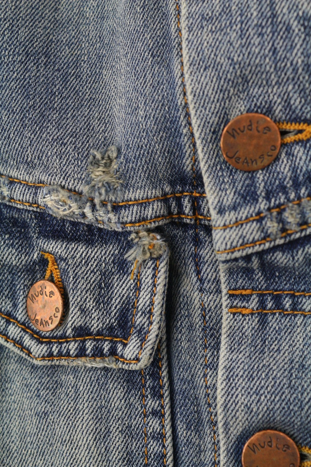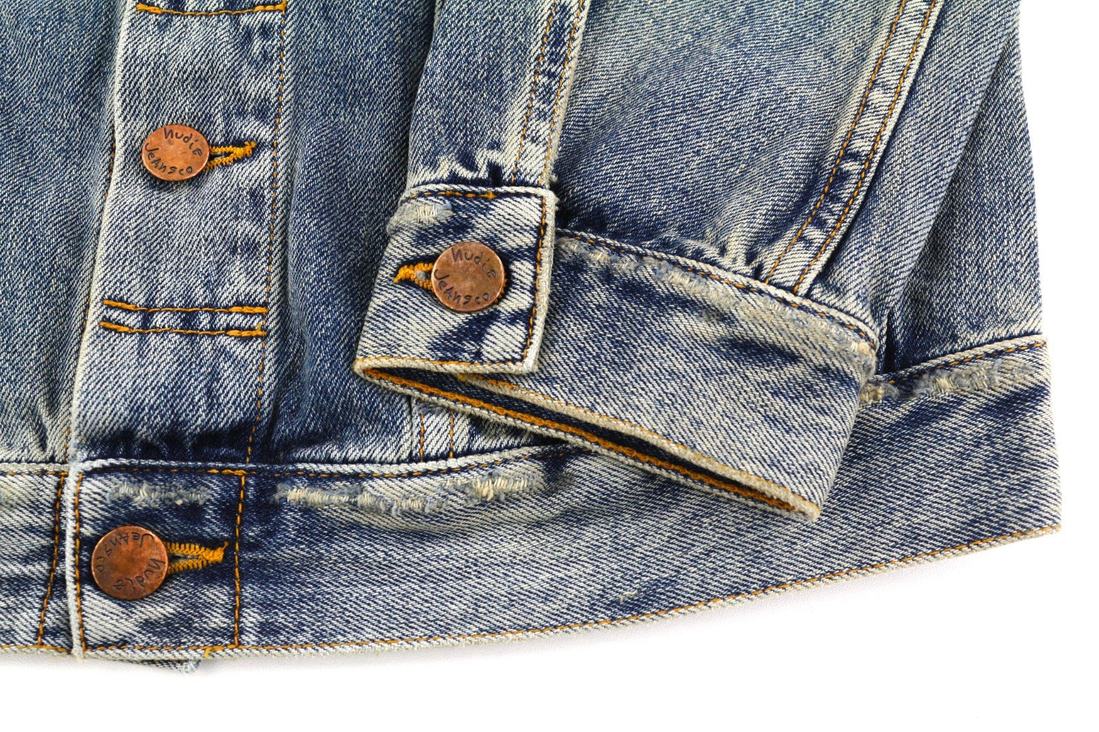 NUDIE JEANS Billy Men's S Shimmering Indigo Ripped Polo Neck Washed Jacket