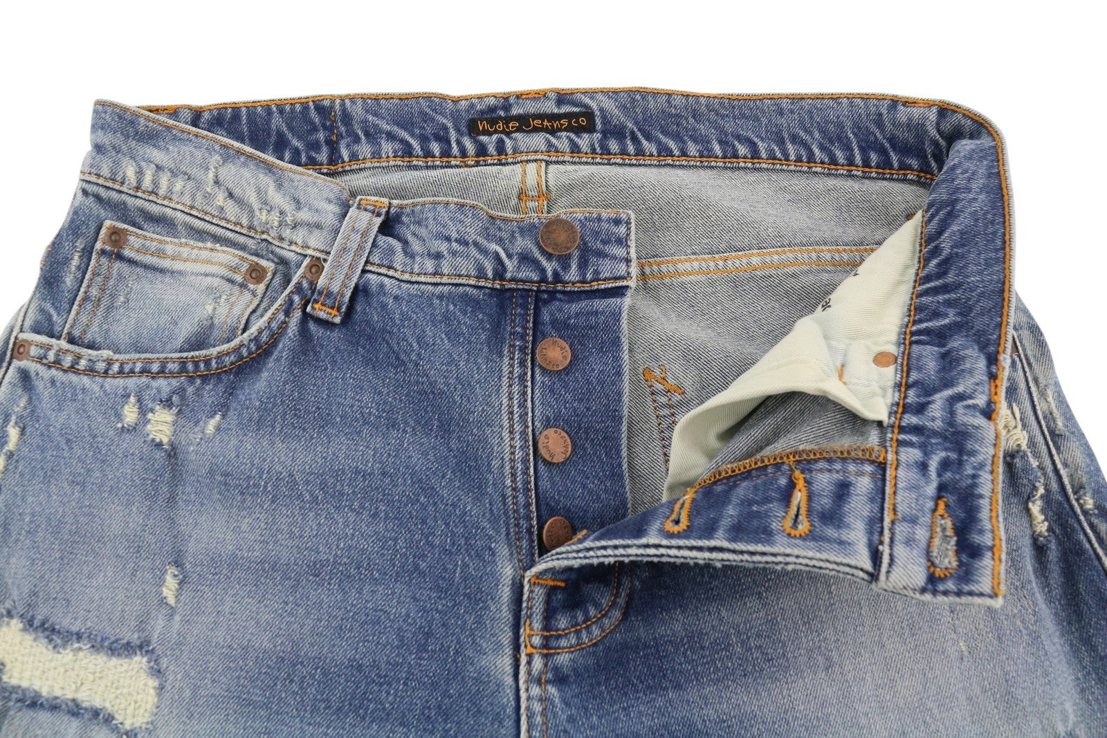 NUDIE JEANS Grim Tim Worn Blues Men Jeans W31/L32 Blue Faded Ripped Distress
