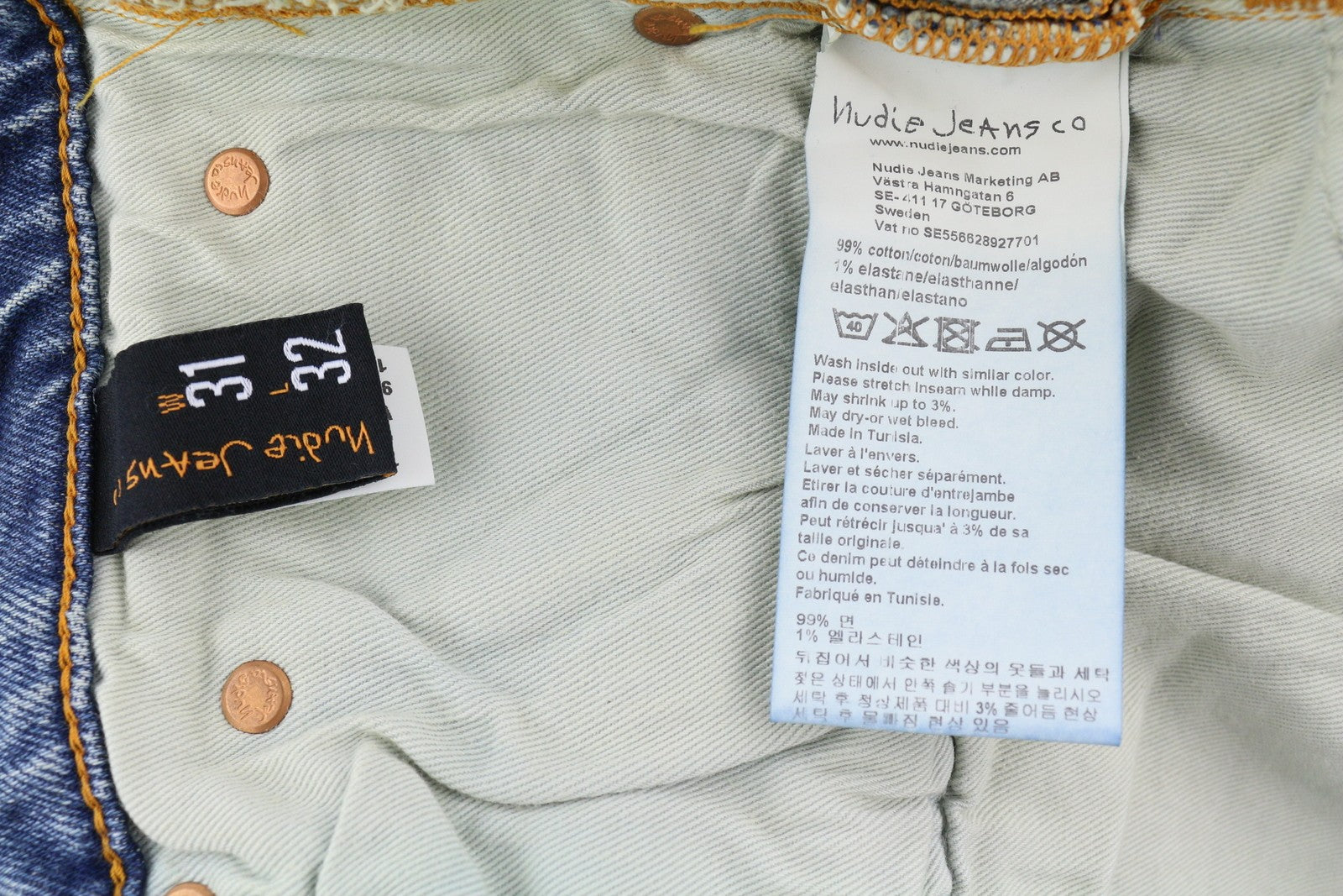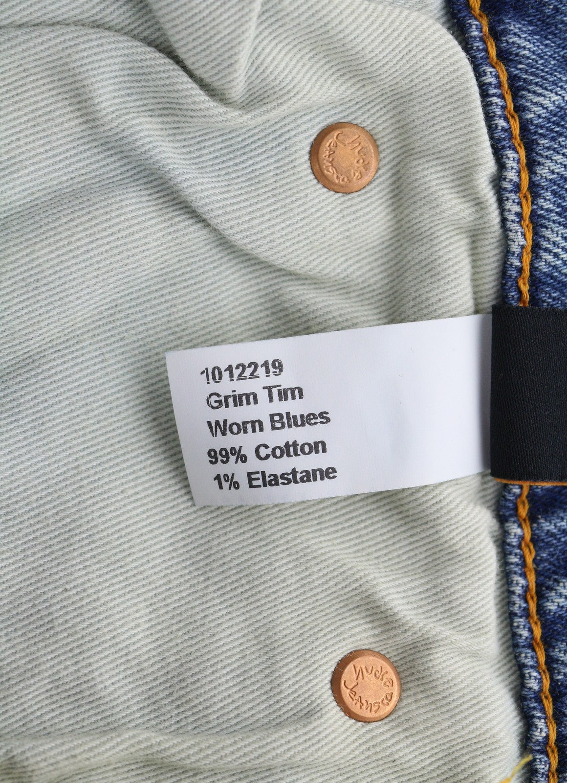 NUDIE JEANS Grim Tim Worn Blues Men Jeans W31/L32 Faded Distressed Denim