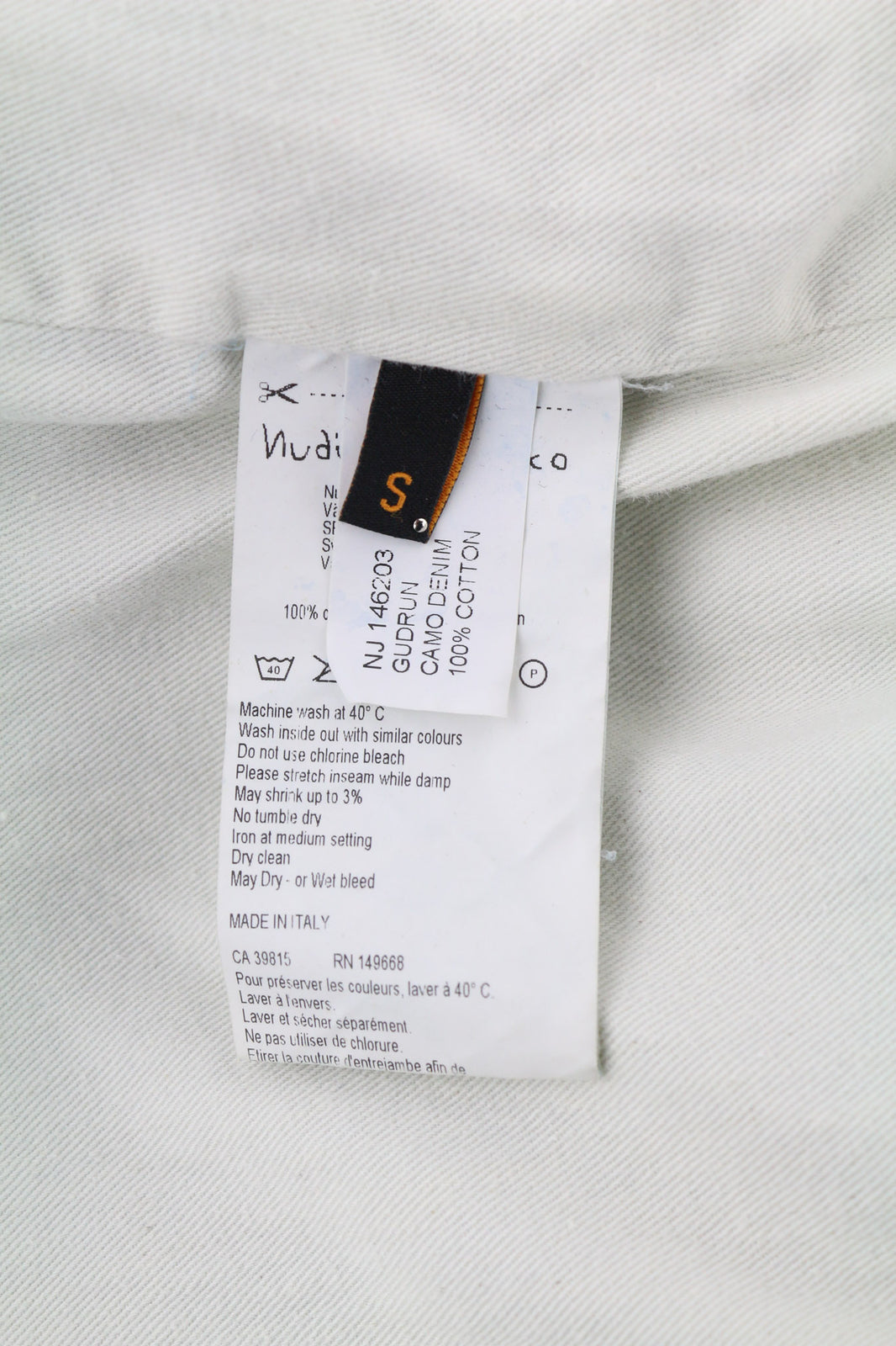 NUDIE JEANS Gudrun Camo Denim Women Jacket S Blue Patterned Cotton Washed Bomber
