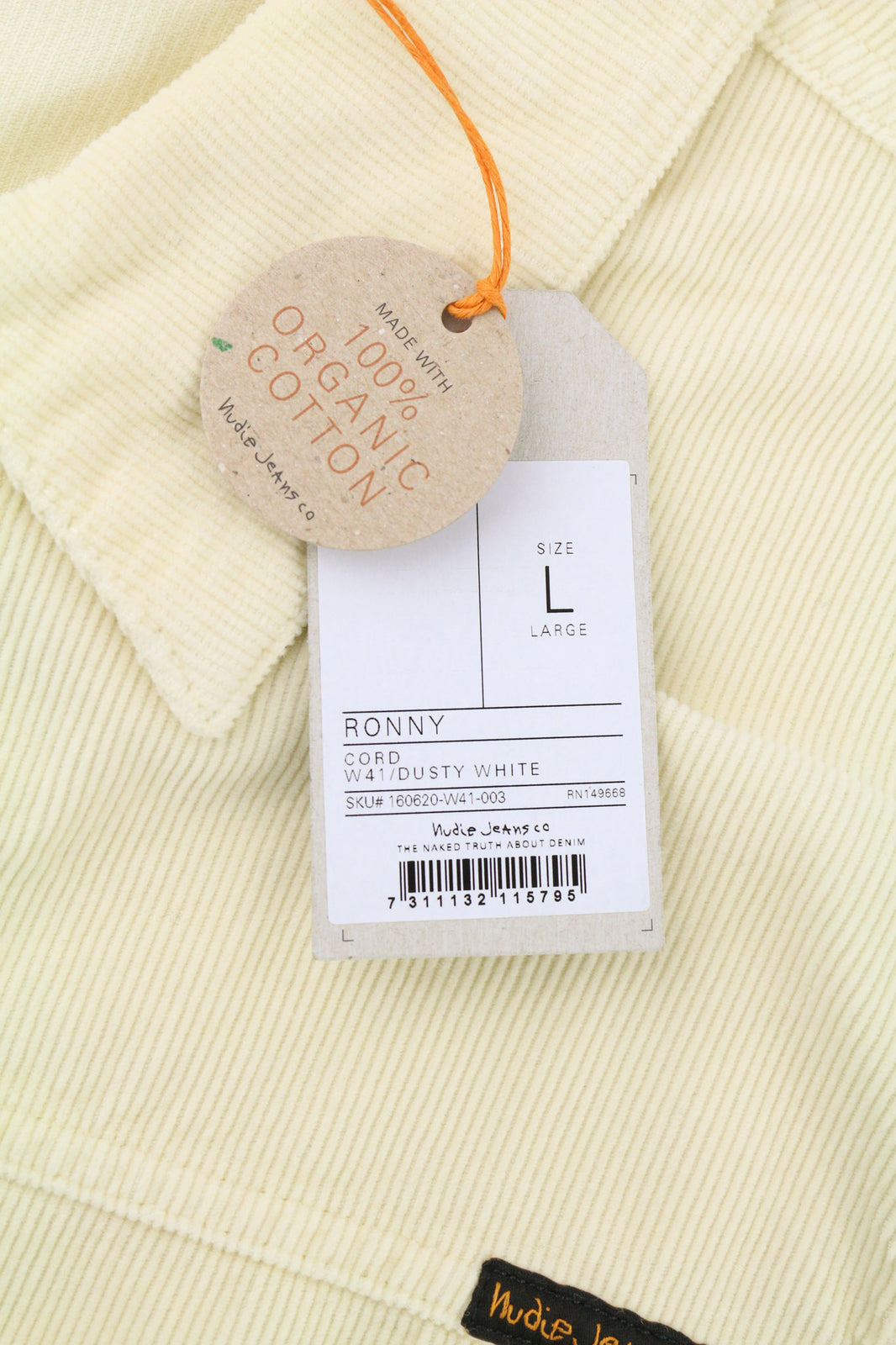 NUDIE JEANS Ronny Men Jacket L Dusty White Organic Cotton Corduroy Logo Buttoned