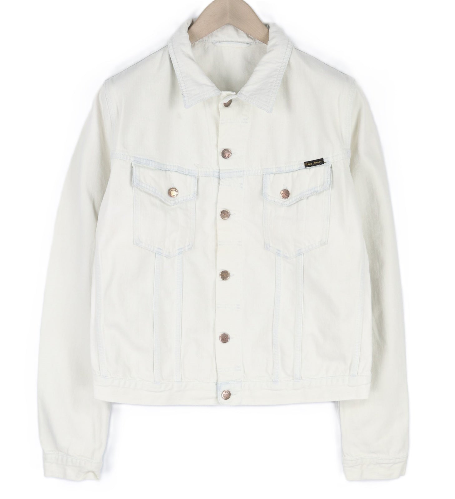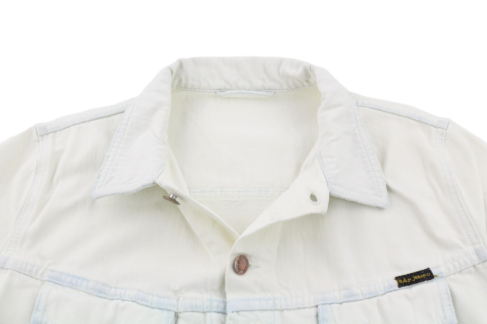 NUDIE JEANS Terry Men Jacket XL Extreme Bleach Light Buttoned Spread Denim Logo