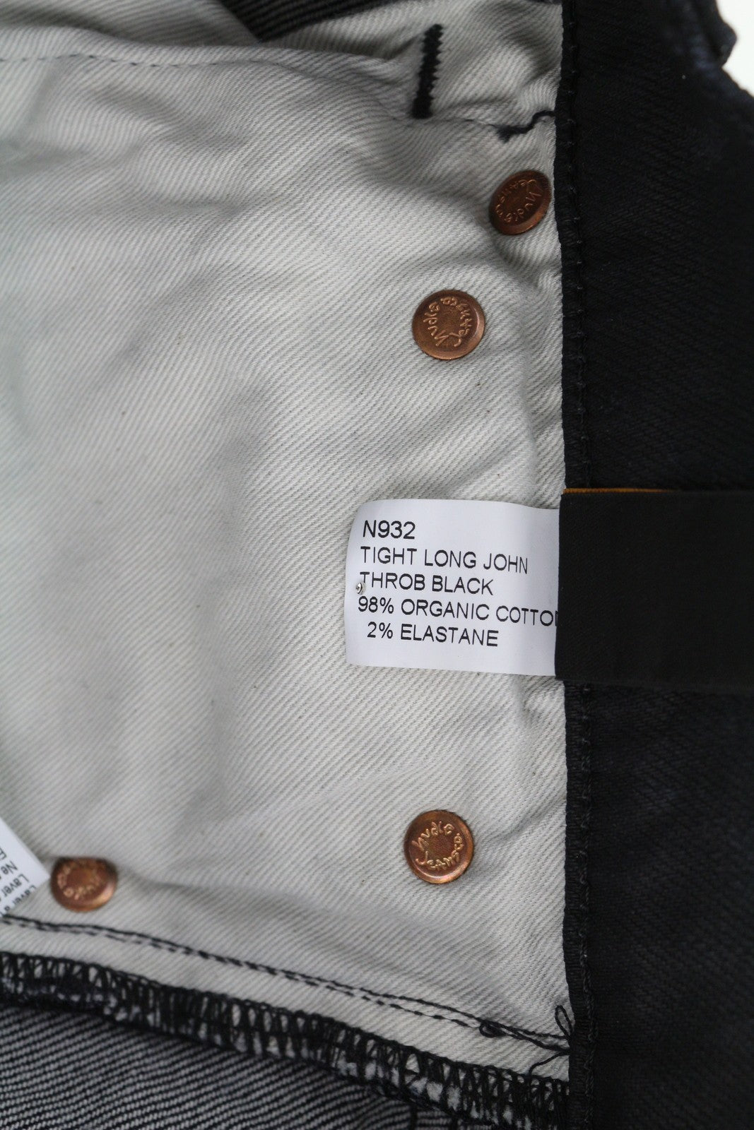 NUDIE JEANS Tight Long John Men Jeans W28/L30 Throb Black Slim Organic Coated