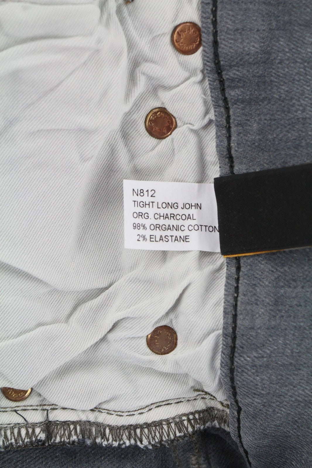 NUDIE JEANS Tight Long John Men Jeans W30/L34 Organic Charcoal Slim Logo Denim