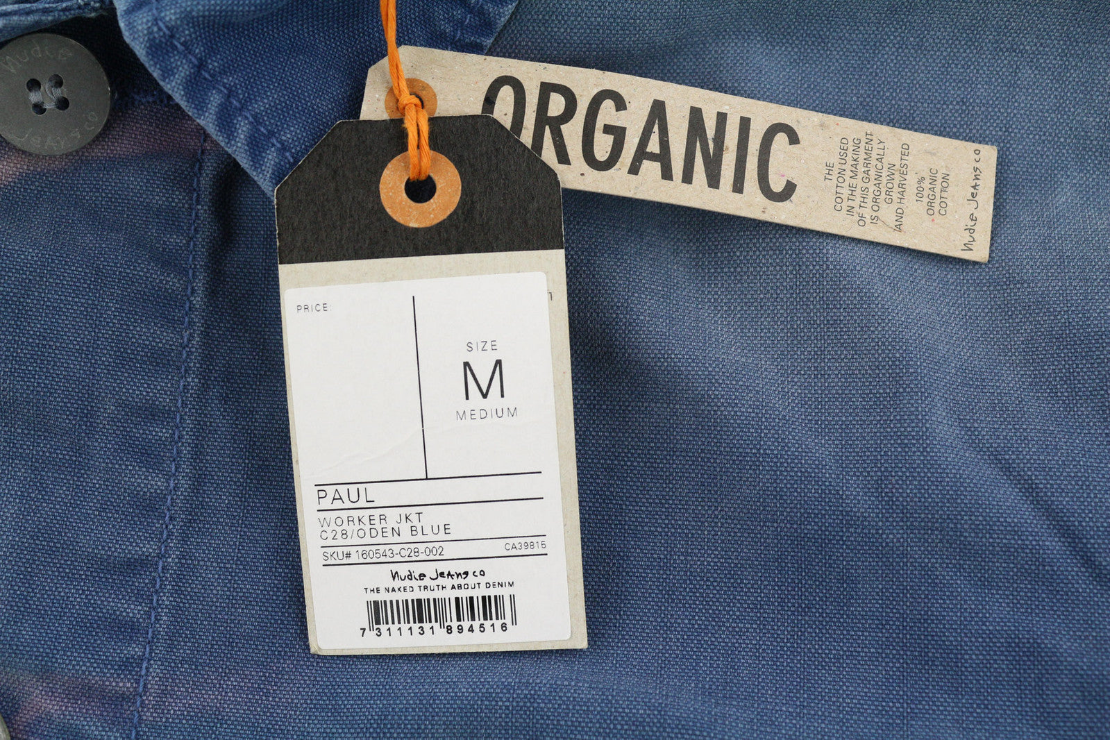 NUDIE Paul Men Jacket M Worker Buttoned Collar Pockets Washed Denim Blue