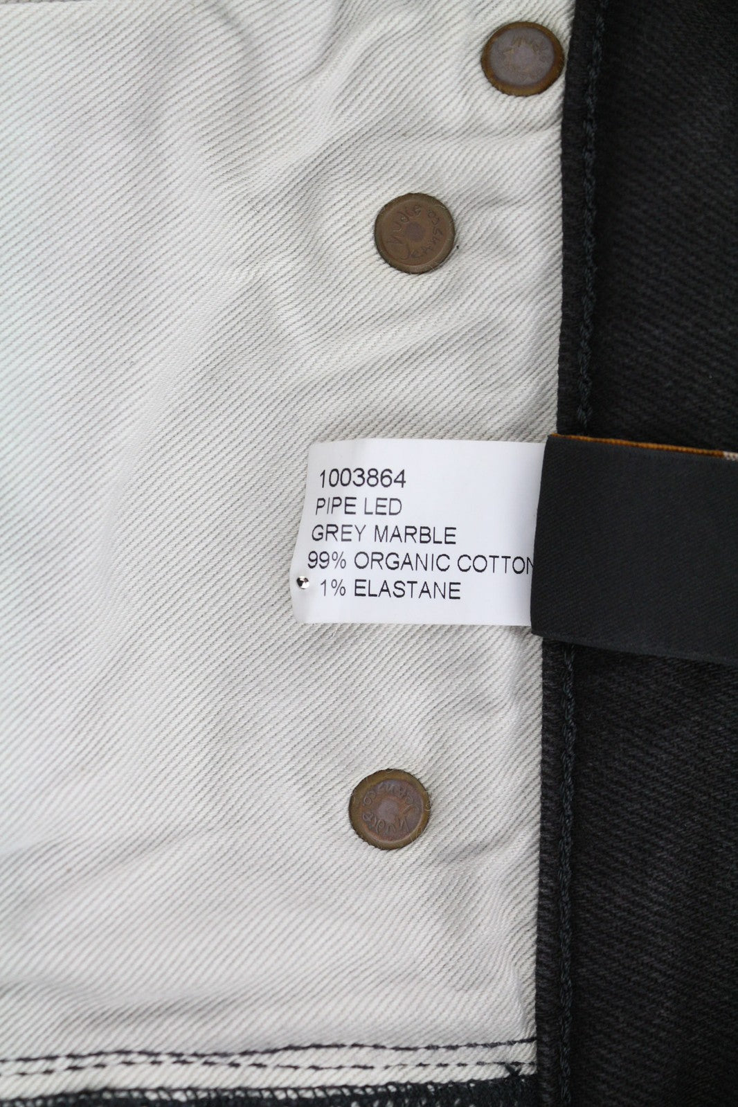 NUDIE Pipe Led Men Jeans W30/L30 Grey Marble Organic Skinny Washed Zip Fly Dark