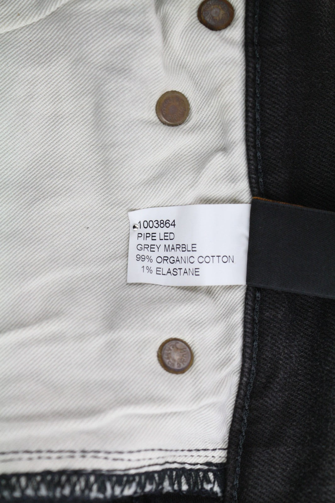 NUDIE Pipe Led Men Jeans W30/L32 Grey Marble Organic Skinny Fit Washed Zip Dark