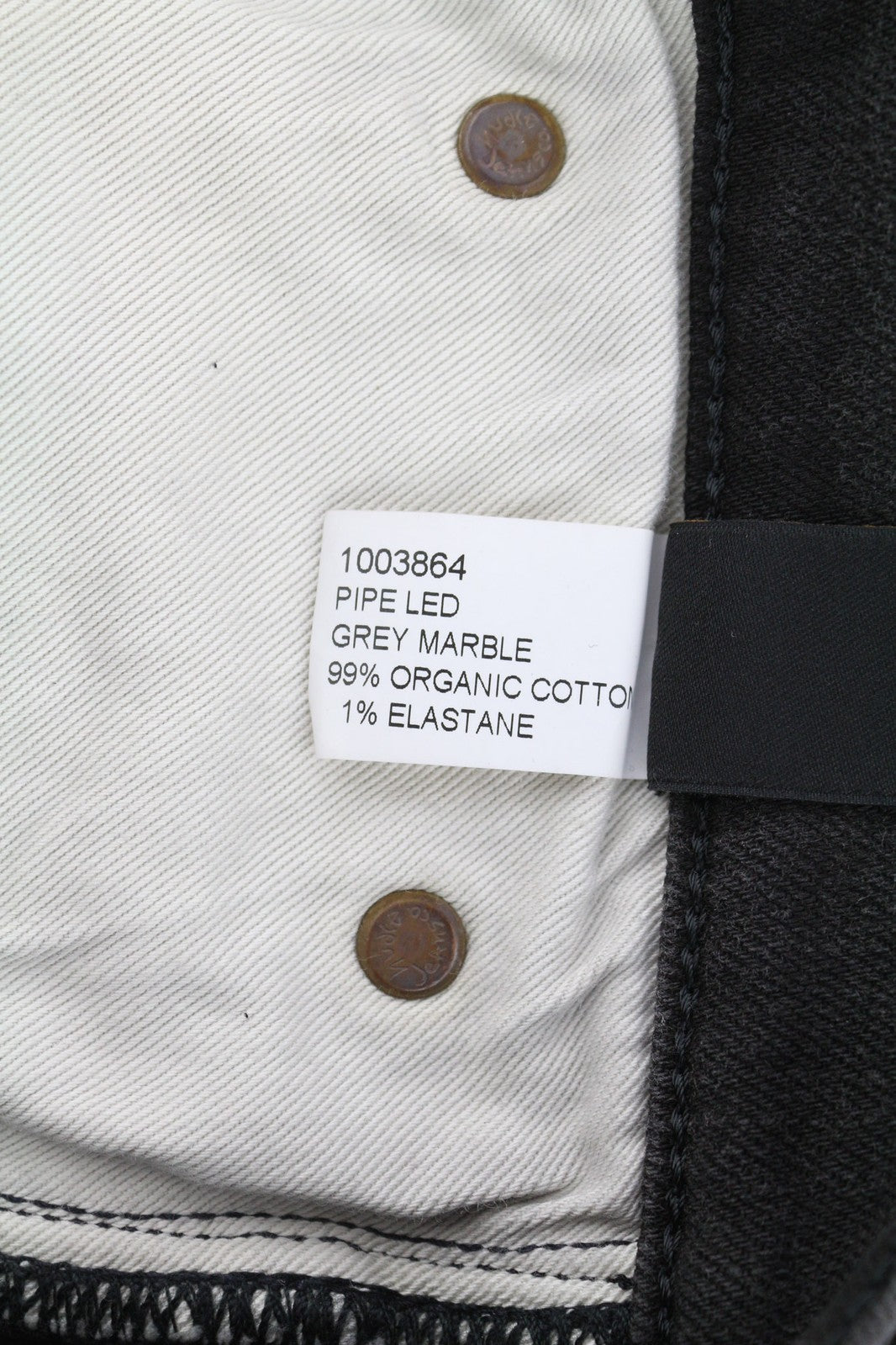 NUDIE Pipe Led Men Jeans W30/L32 Grey Marble Organic Skinny Washed Zip Fly Dark