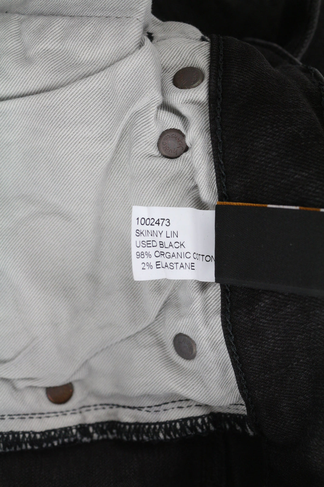 NUDIE Skinny Lin Used Black Men Jeans W28/L32 Distressed Zip Fly Faded Casual