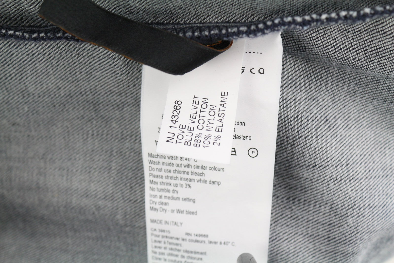 NUDIE Tove Women Jacket M Blue Velvet Neck Buttoned Dark Long Sleeve Logo