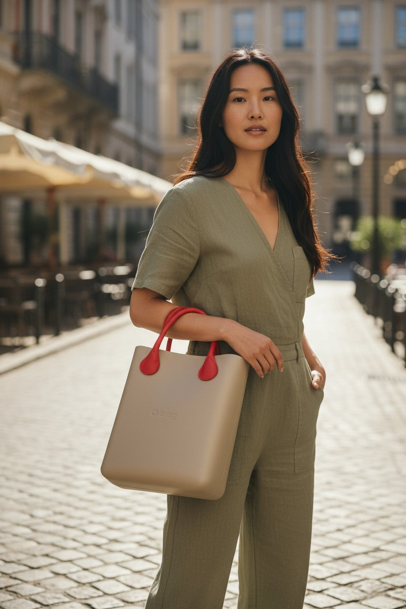 O BAG Chic Women's Bag OS Brown Gold Double Handles With Inner Bag Square Tote