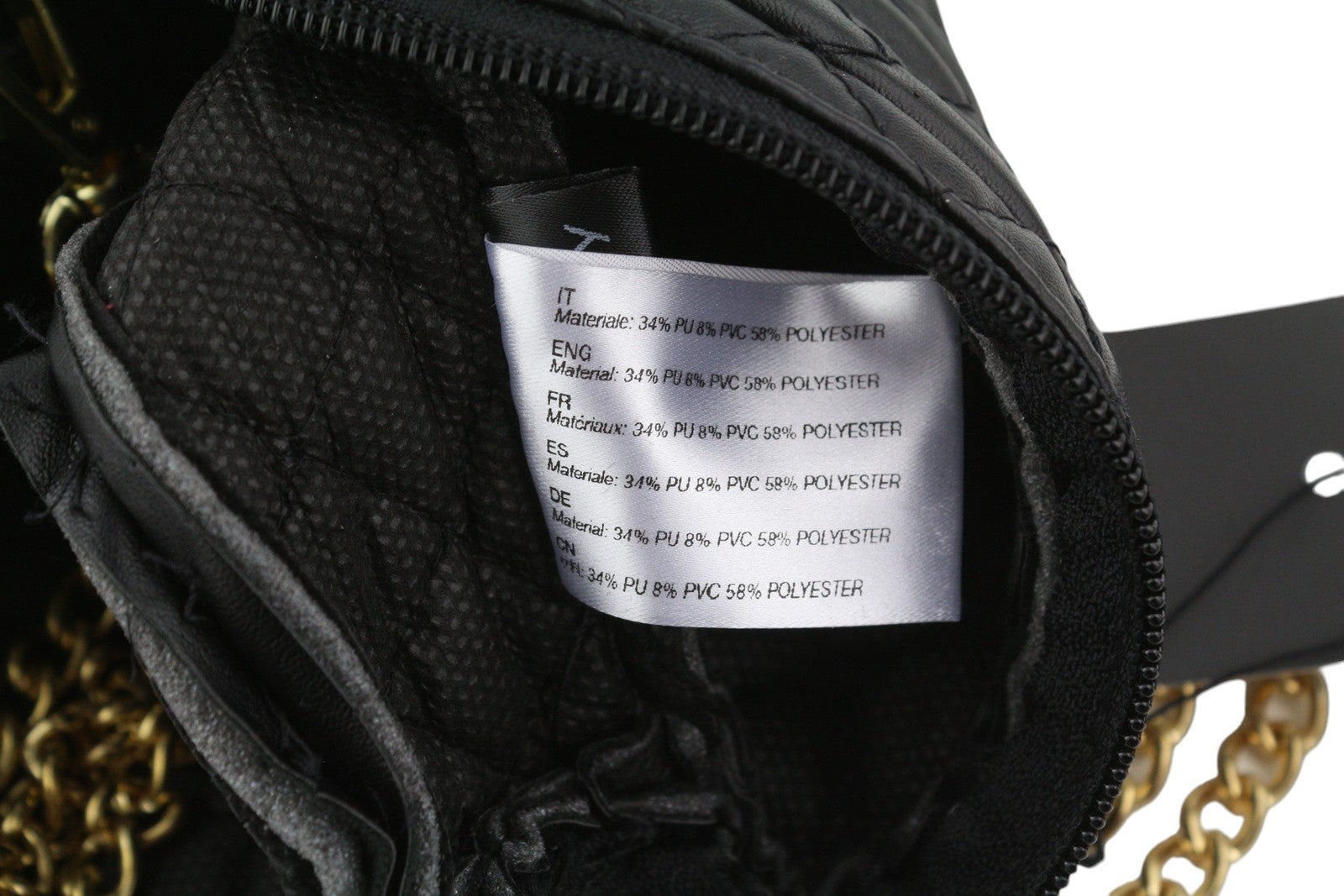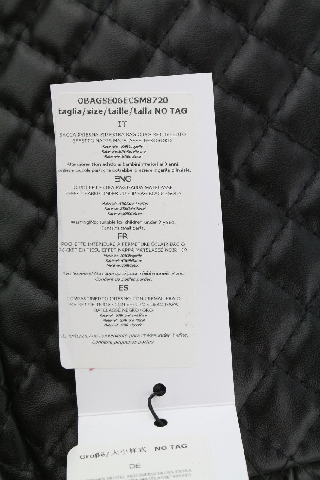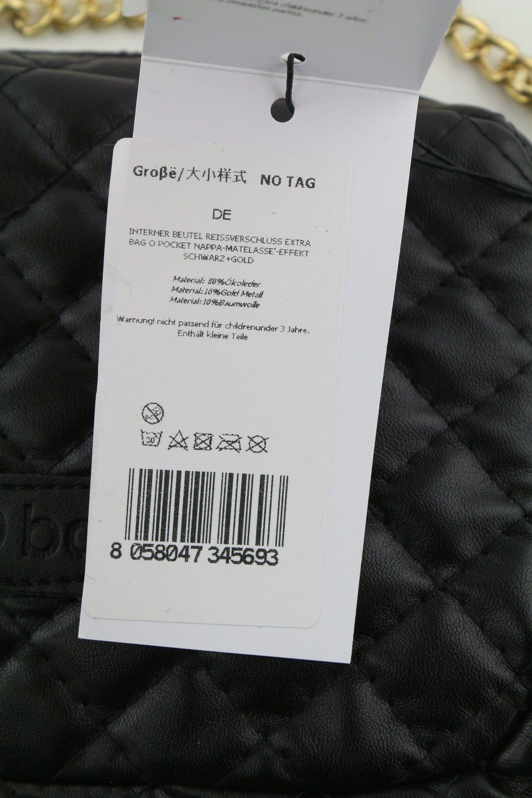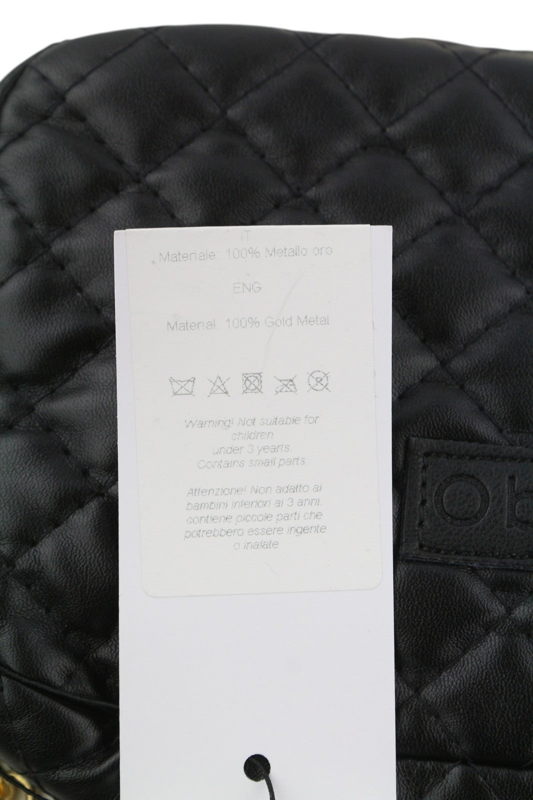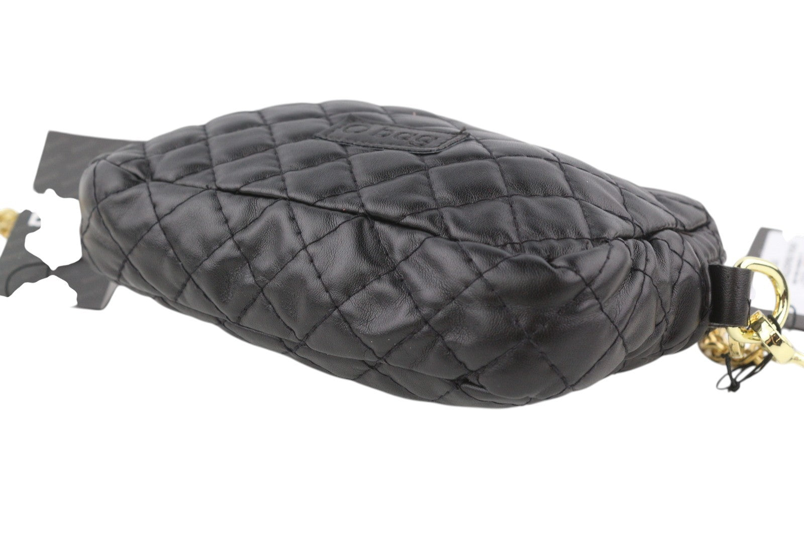 O BAG Extra Pocket Women Bag OS Black Quilted Coated Gold Chain Crossbody