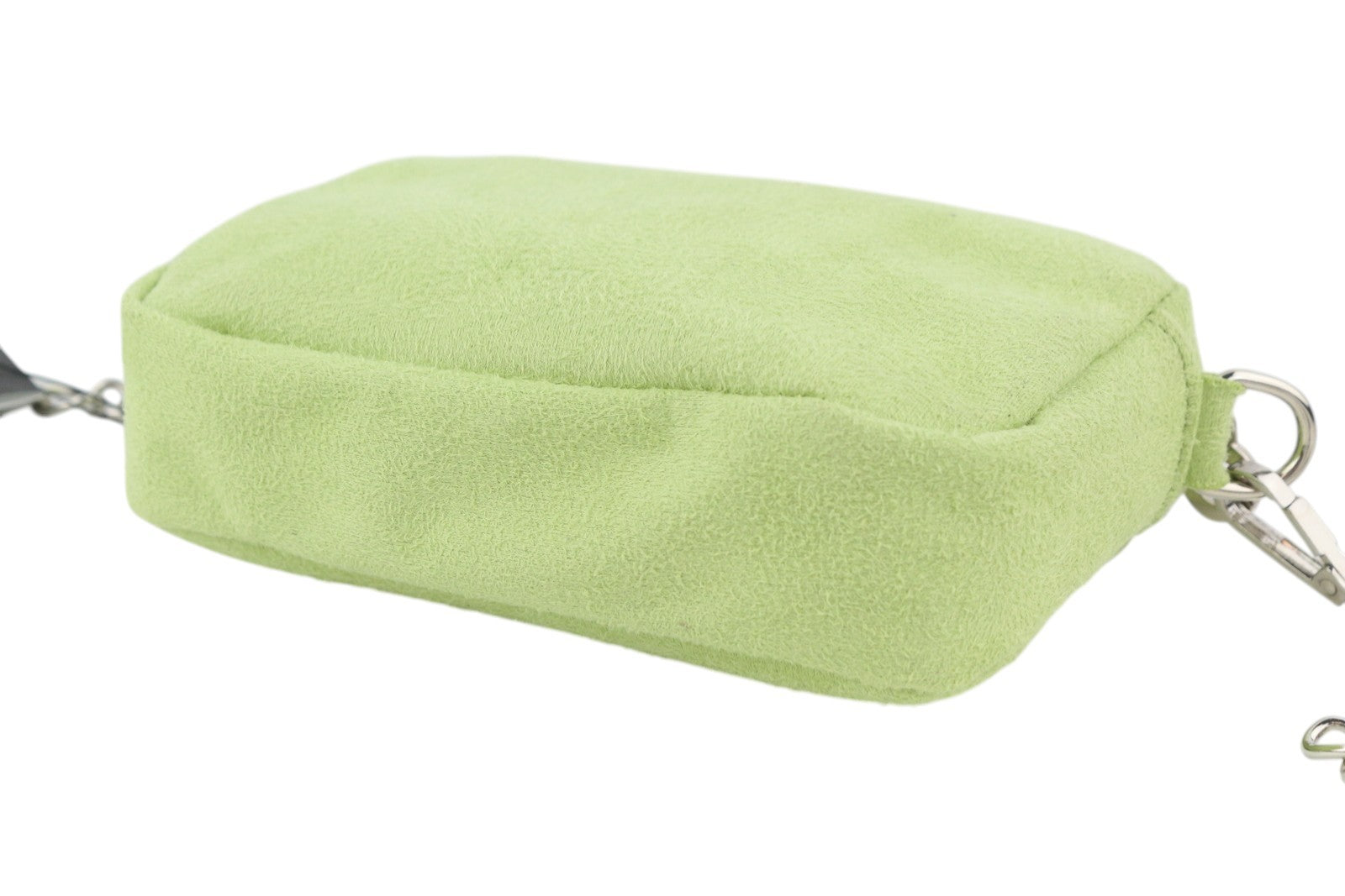O BAG Extra Pocket Women Bag OS Green Faux Suede Silver Chain Crossbody