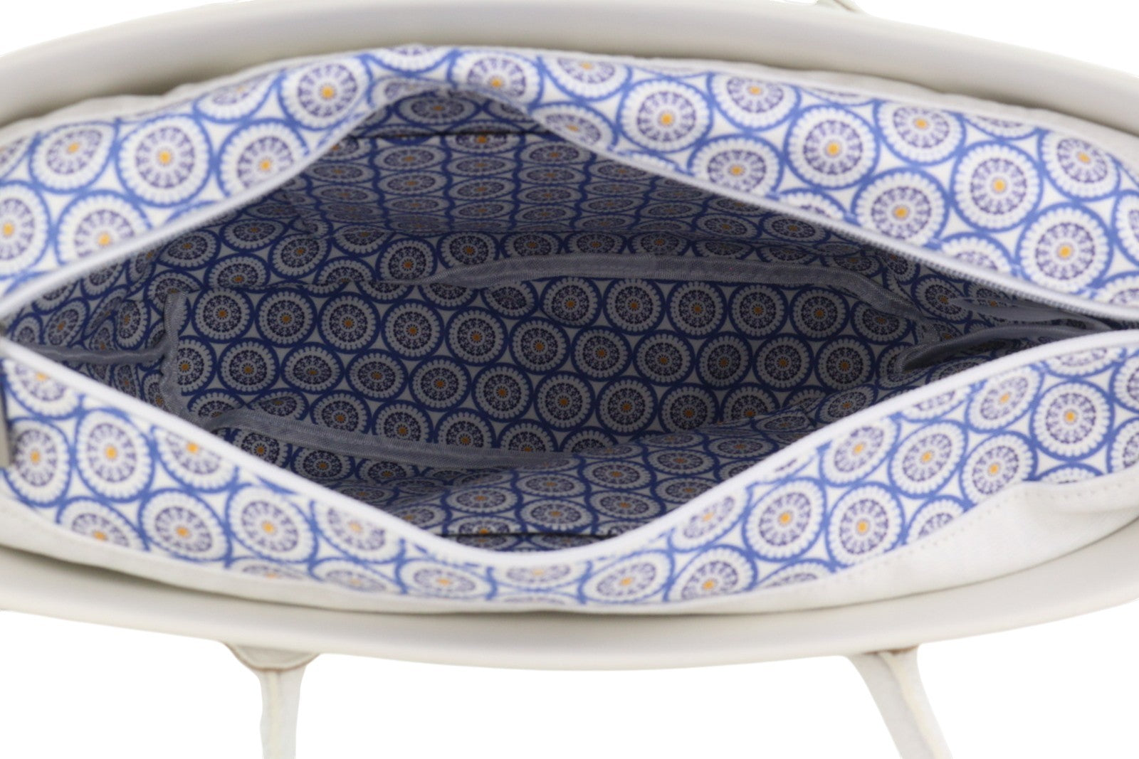 O BAG Urban Women Bag OS White Double Handles Patterned Inner Bag Trapezoid Tote