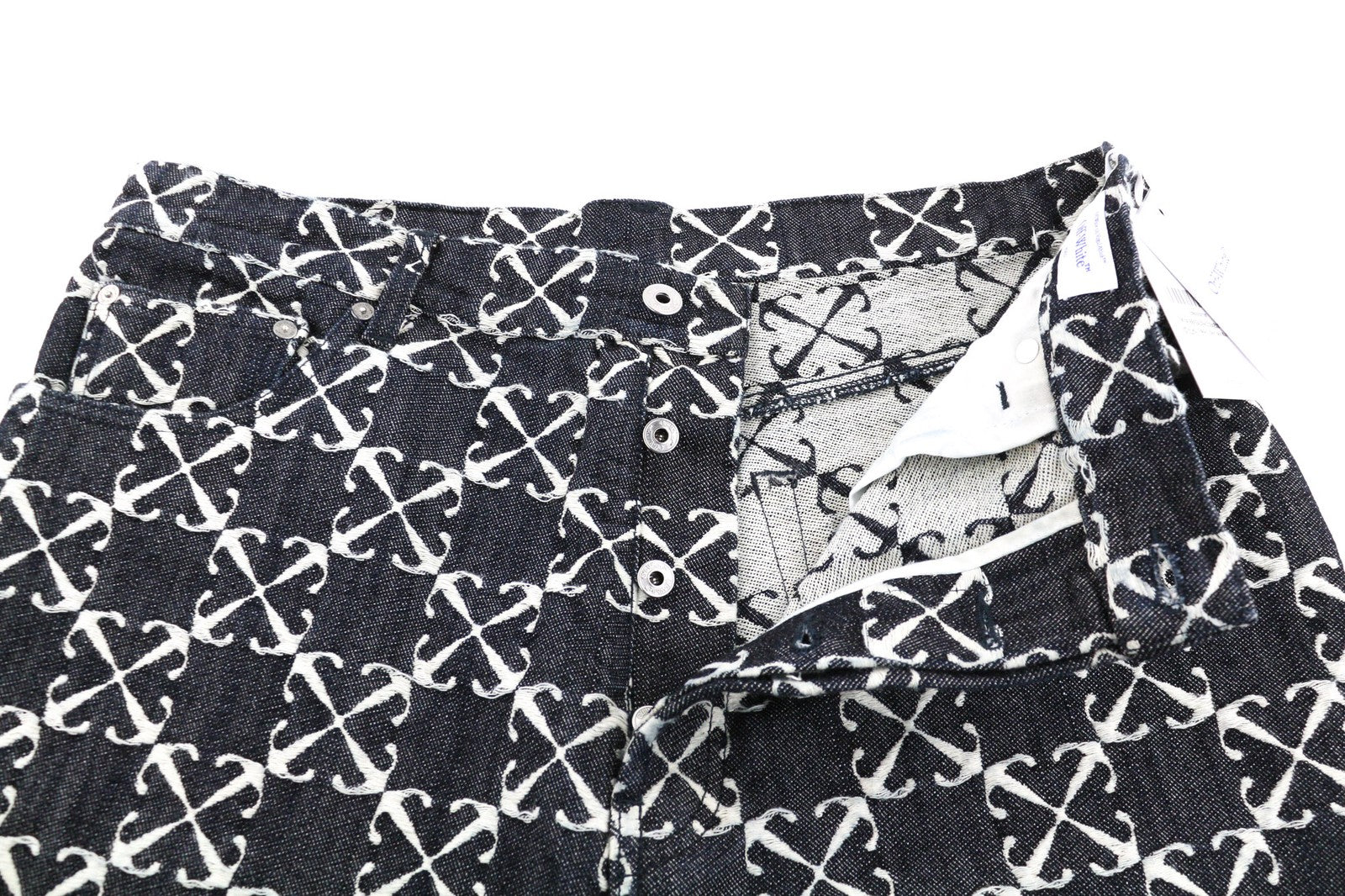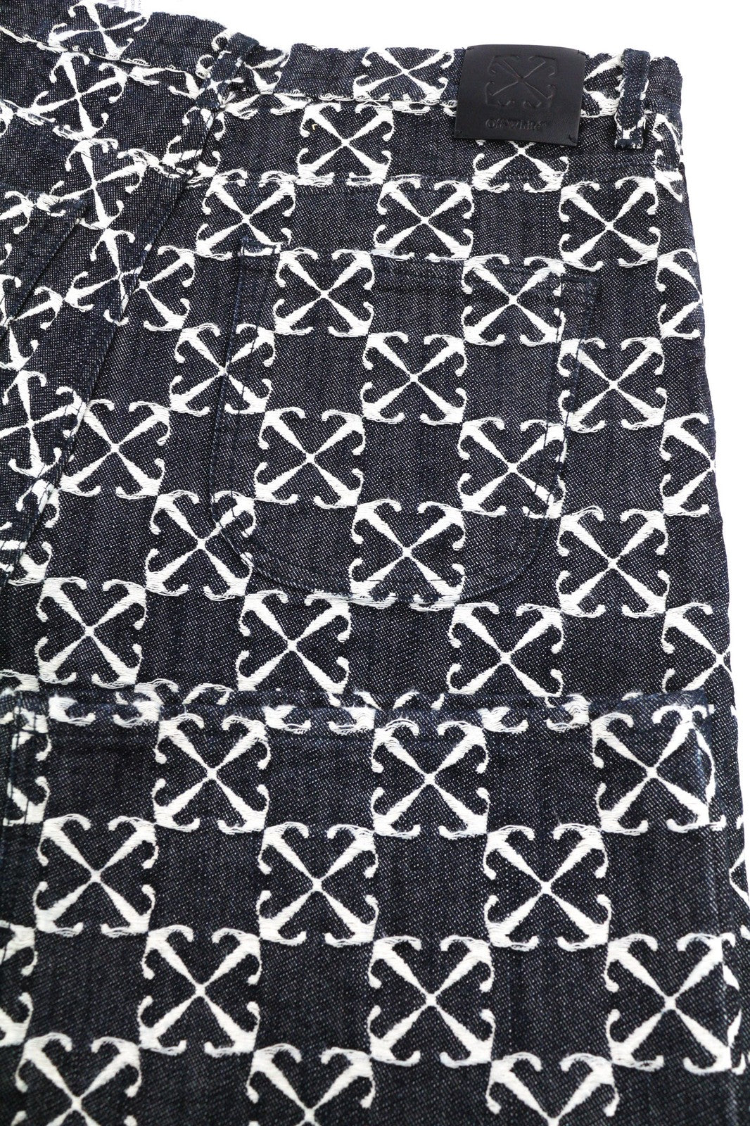 OFF-WHITE Men Jeans W33 Arrow Jacquard Straight Cotton Blue 5 Pocket