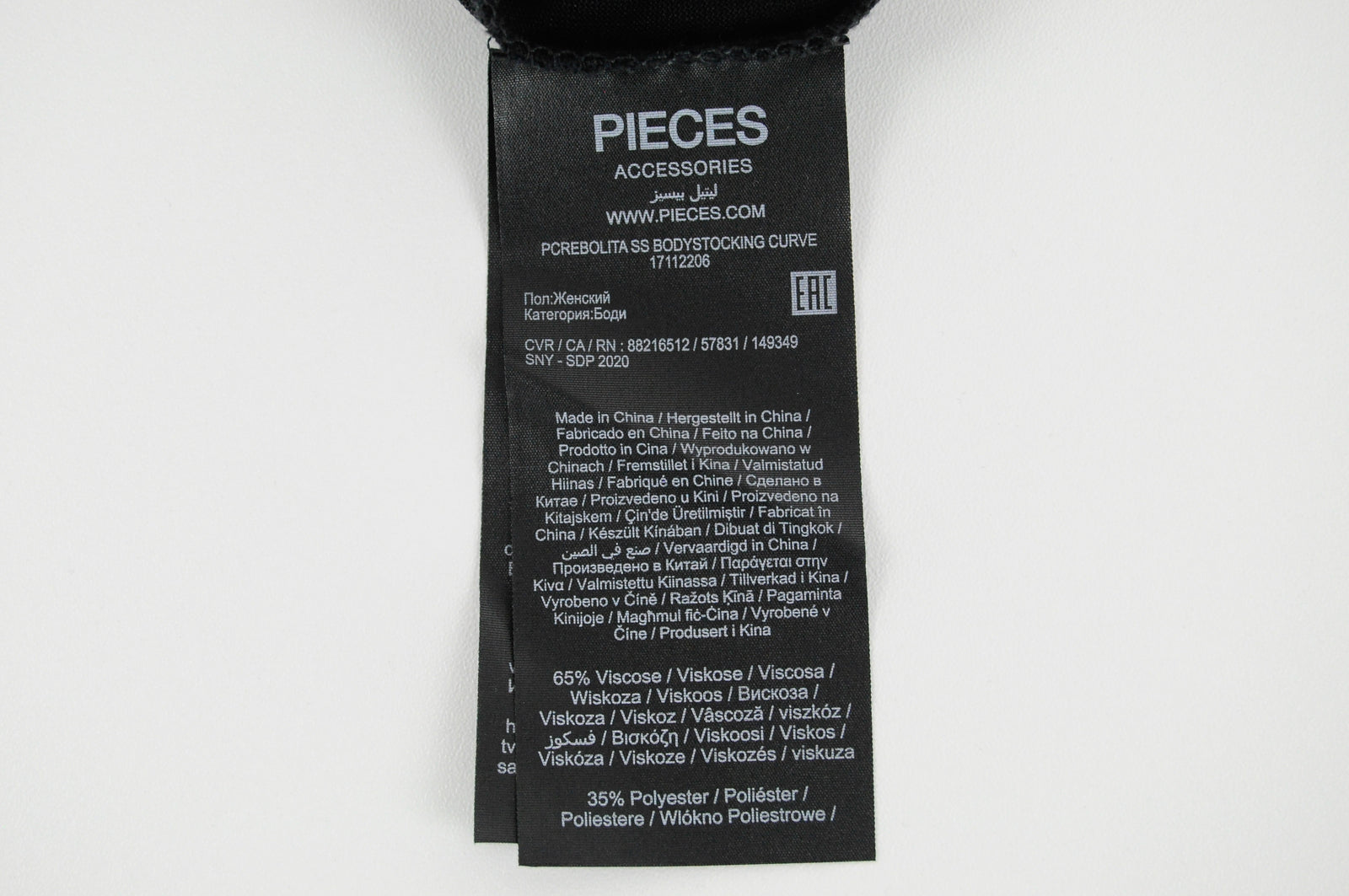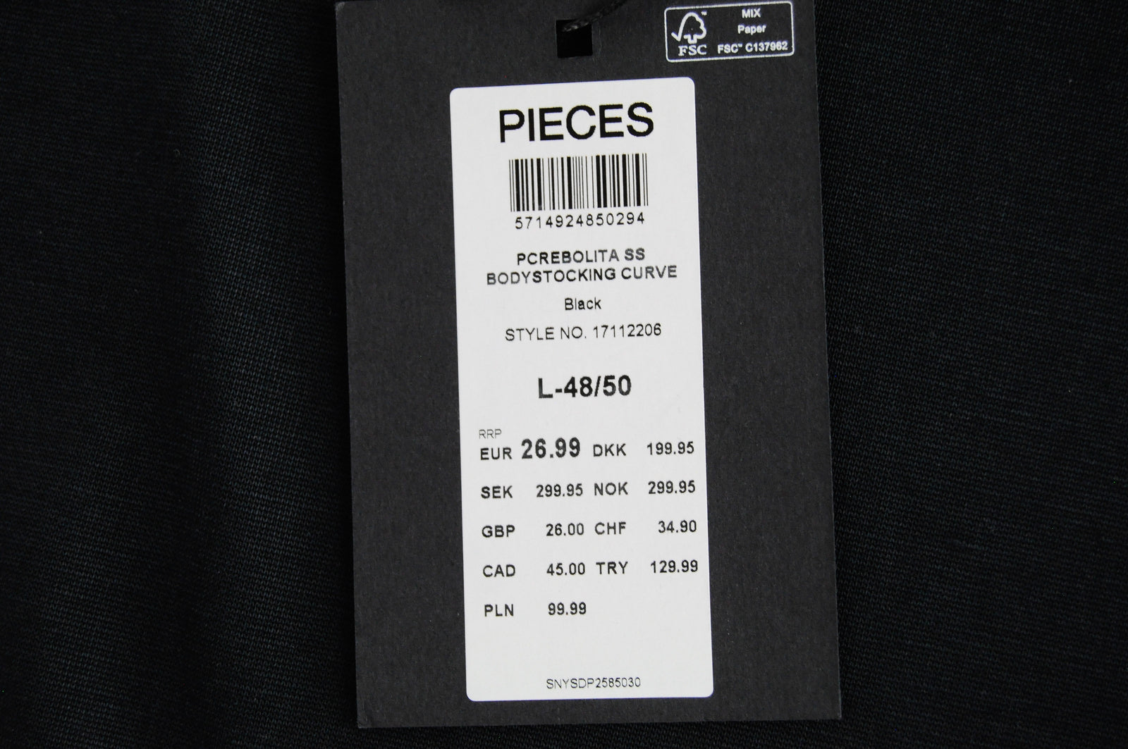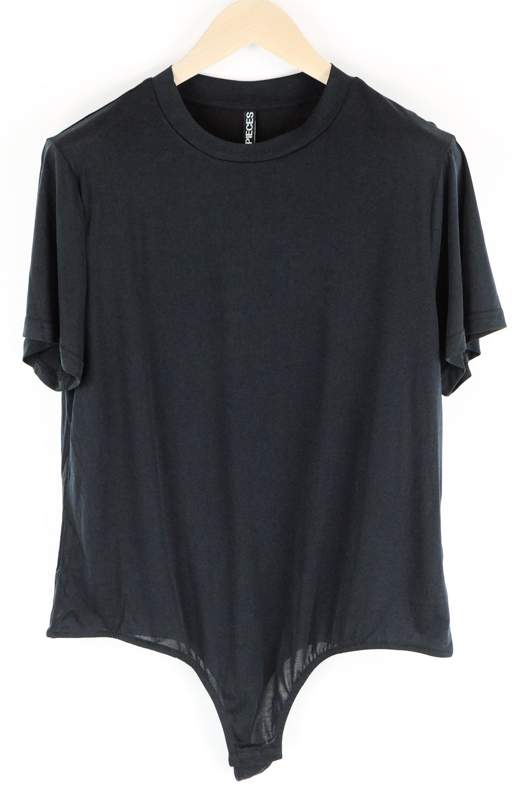 PIECES Women T-Shirt L Black Short Sleeved Bodystocking Curve Fit Round Neck