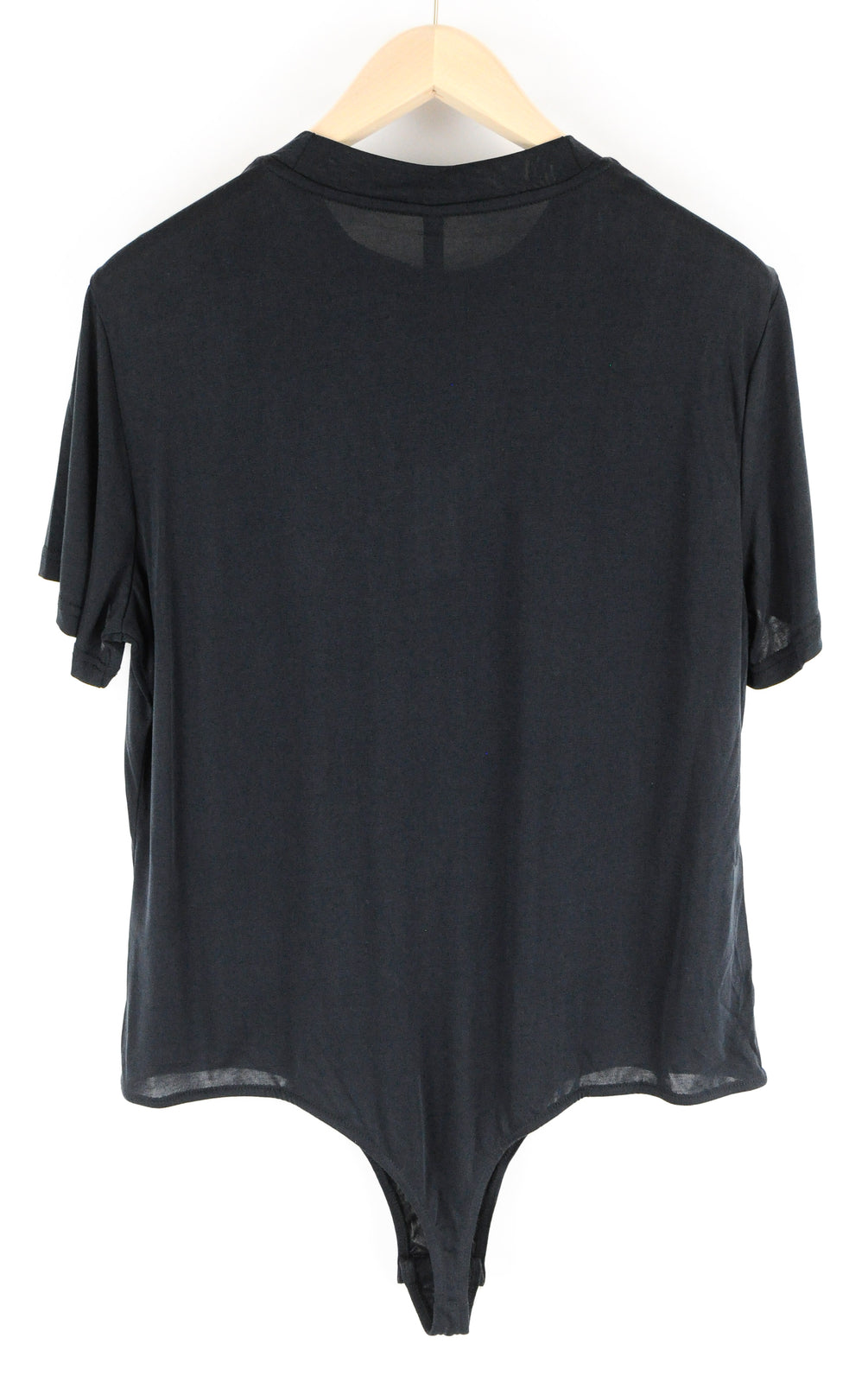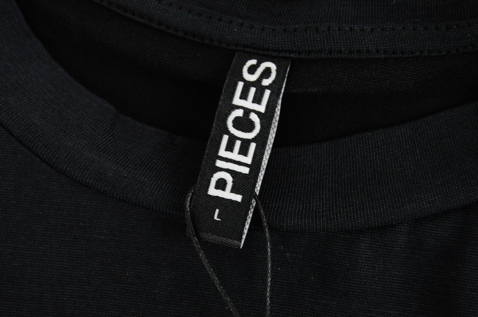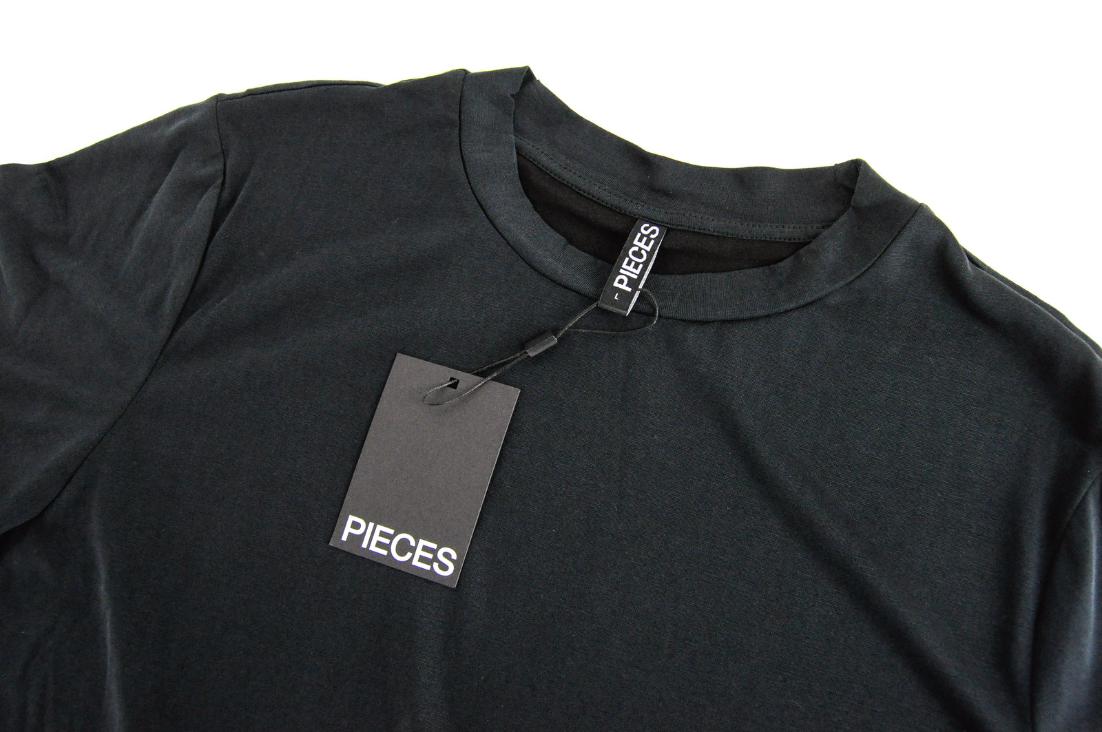 PIECES Women T-Shirt L Black Short Sleeved Bodystocking Curve Fit Round Neck