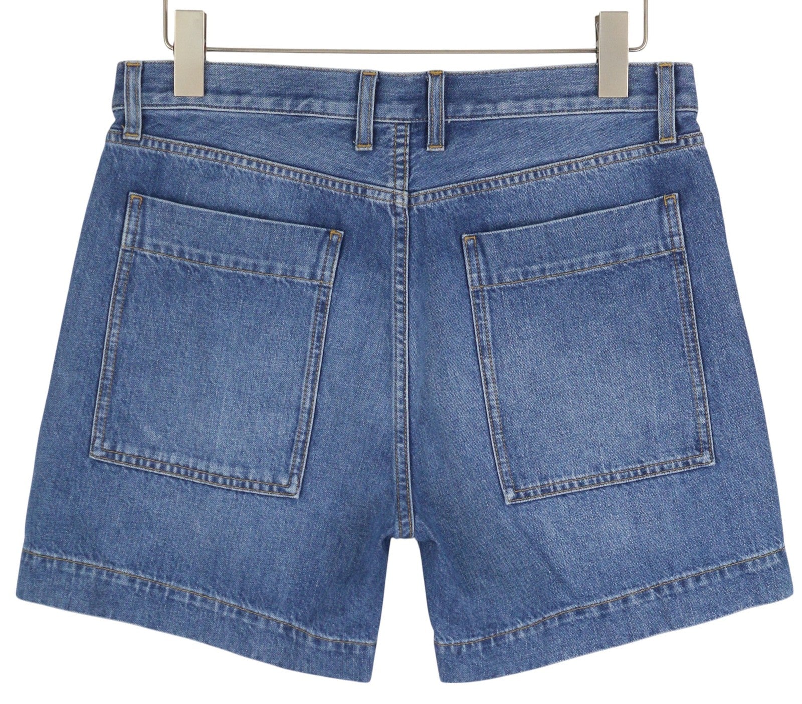 PLAN C Women Shorts 38 Blue Washed Denim Zip Fly Cotton Casual RRP389