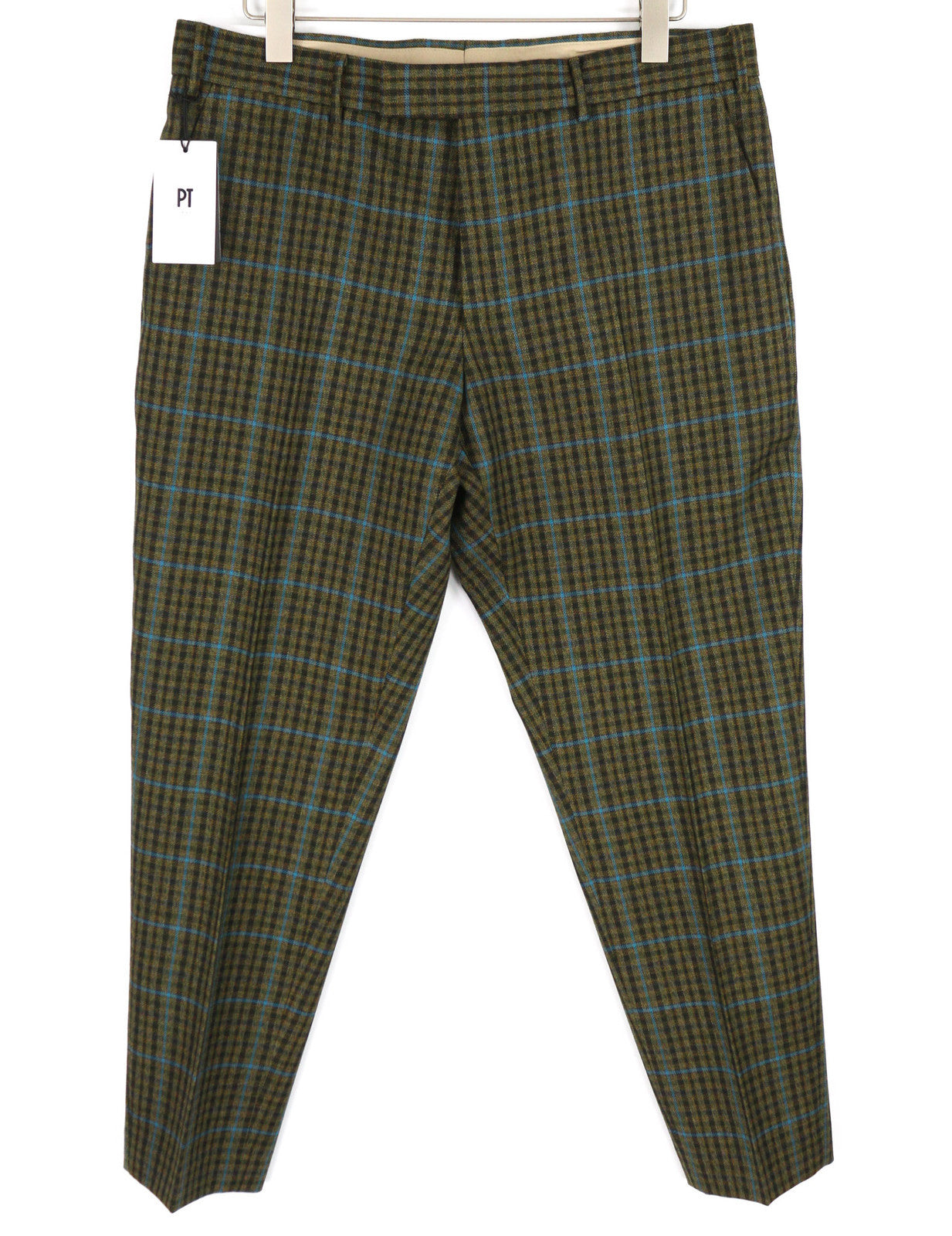PT TORINO Rebel Fit Men Trousers 52 W36 Fleece Wool Plaid Zipper Tapered Fit