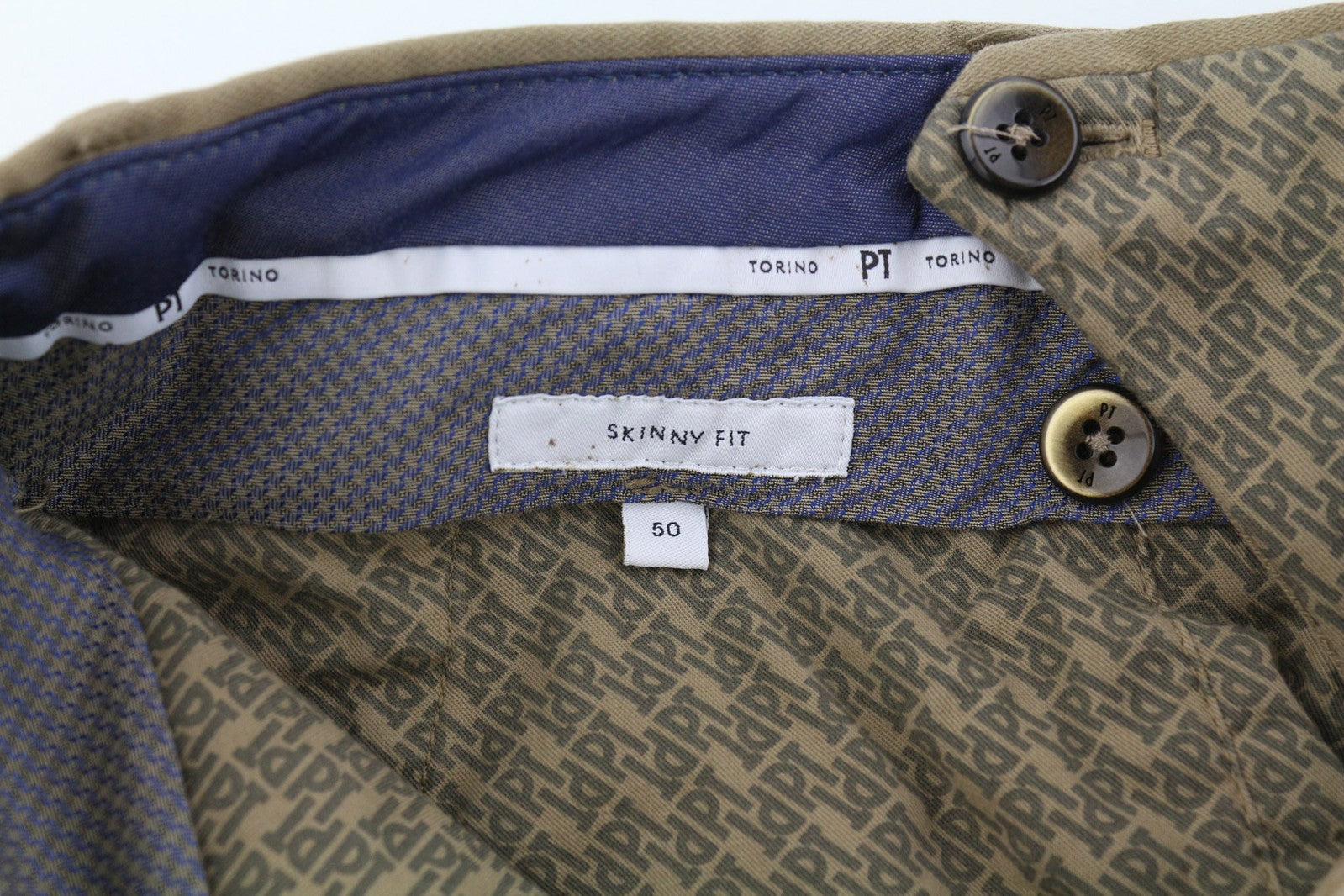 PT TORINO Skinny Mens Trousers 50 Brown Chino Zipper Pockets Casual