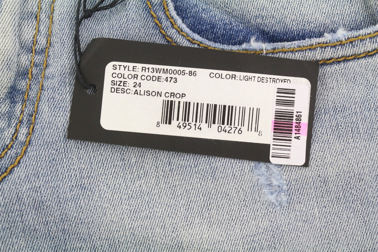 R13 Alison Crop Women Jeans 24 Light Destroyed Patch Distress Skinny