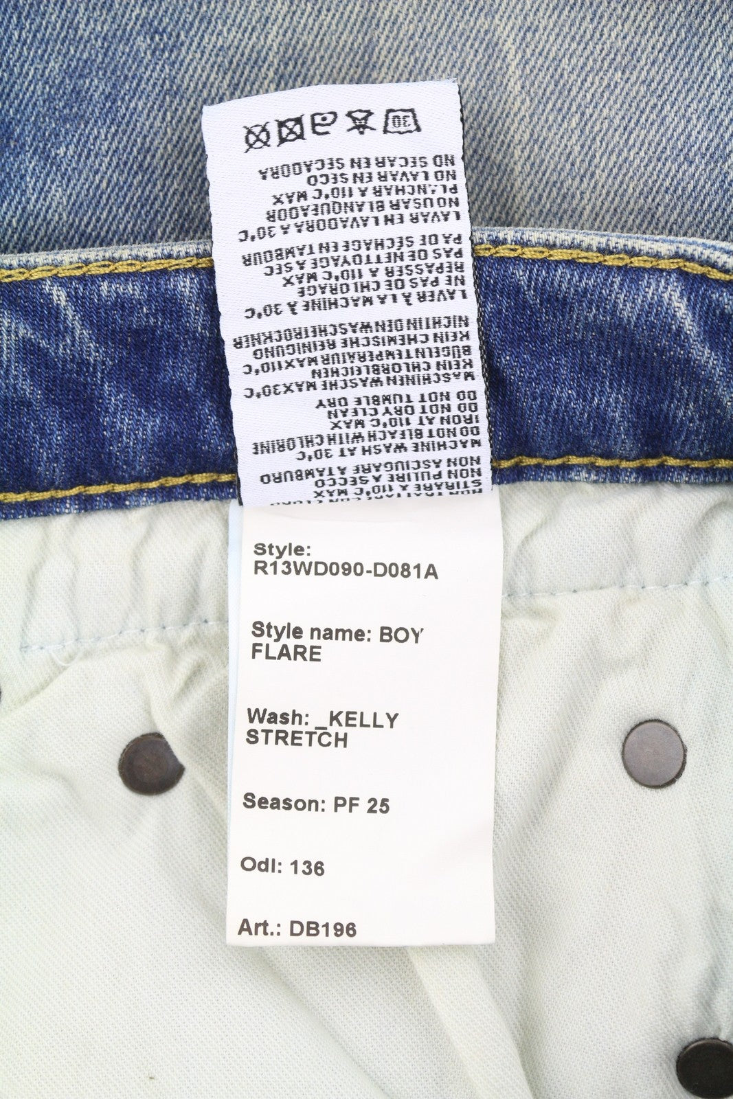 R13 Boy Flare Women Jeans 25 Kelly Stretch Flare Faded Whiskers Blue PF25 RRP645