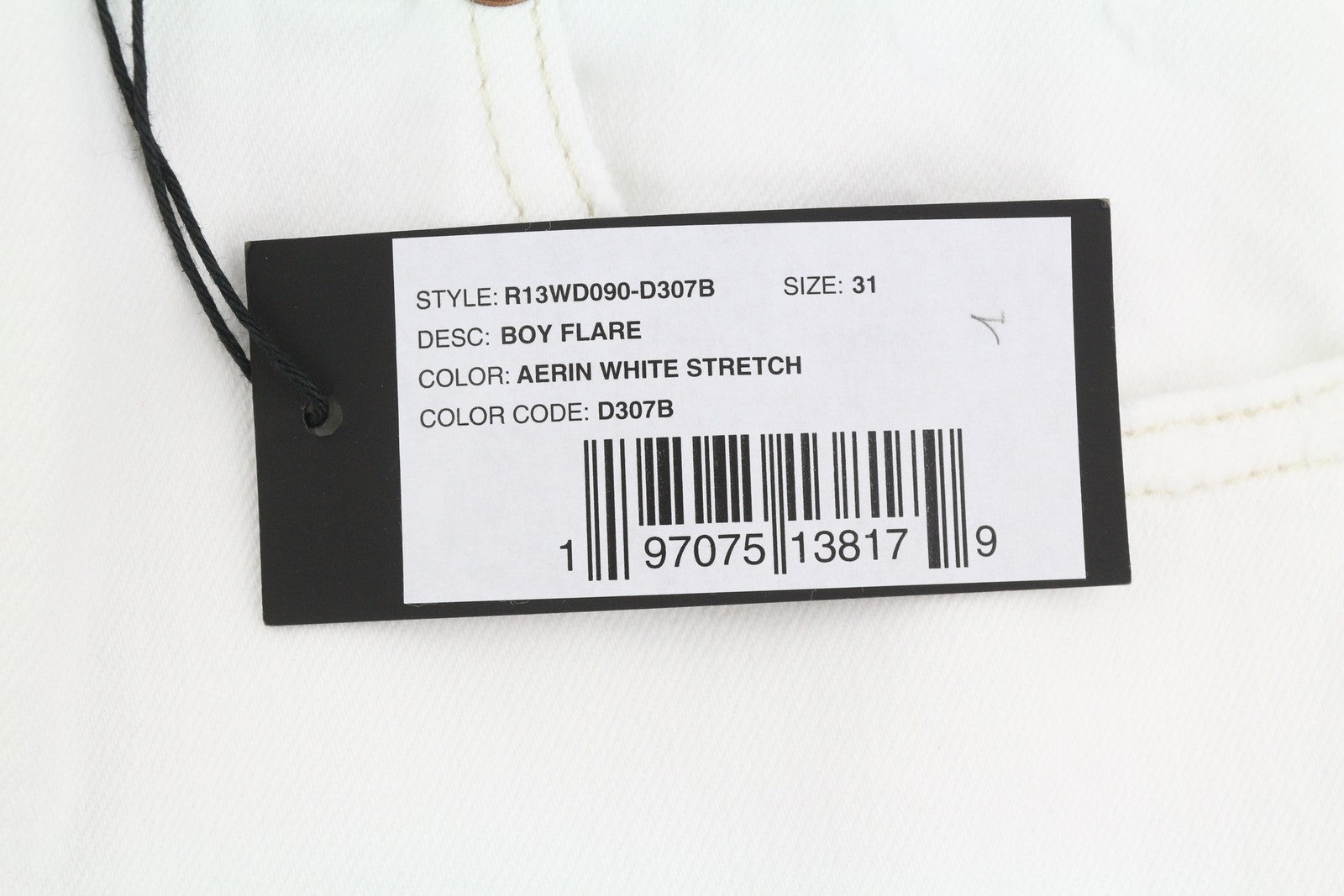 R13 Boy Flare Women Jeans 31 Aerin White Stretch Zip Fly Denim PF25 RRP599