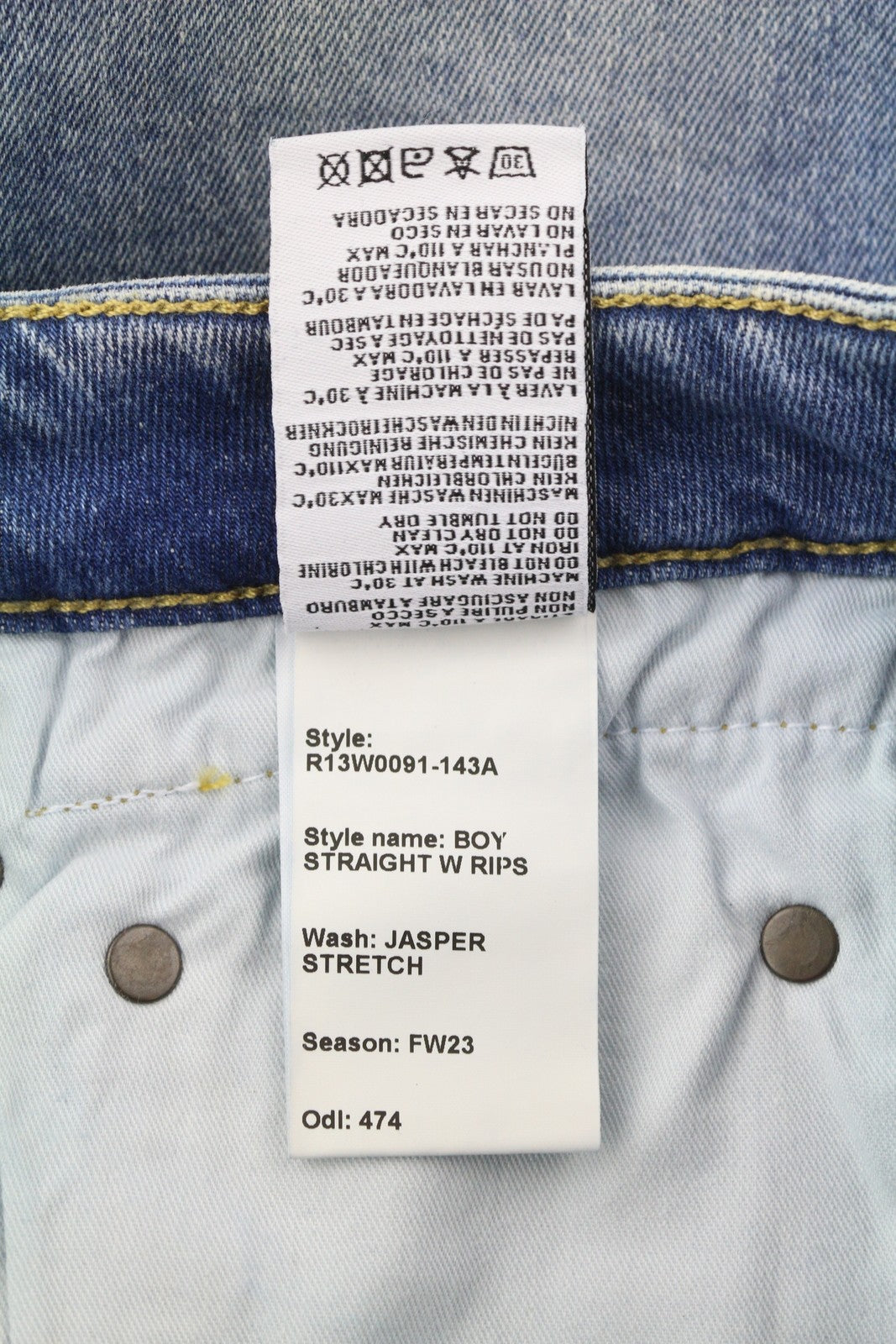 R13 Boy Straight W Rips Women Jeans 26 Jasper Stretch Faded Washed Cropped Denim